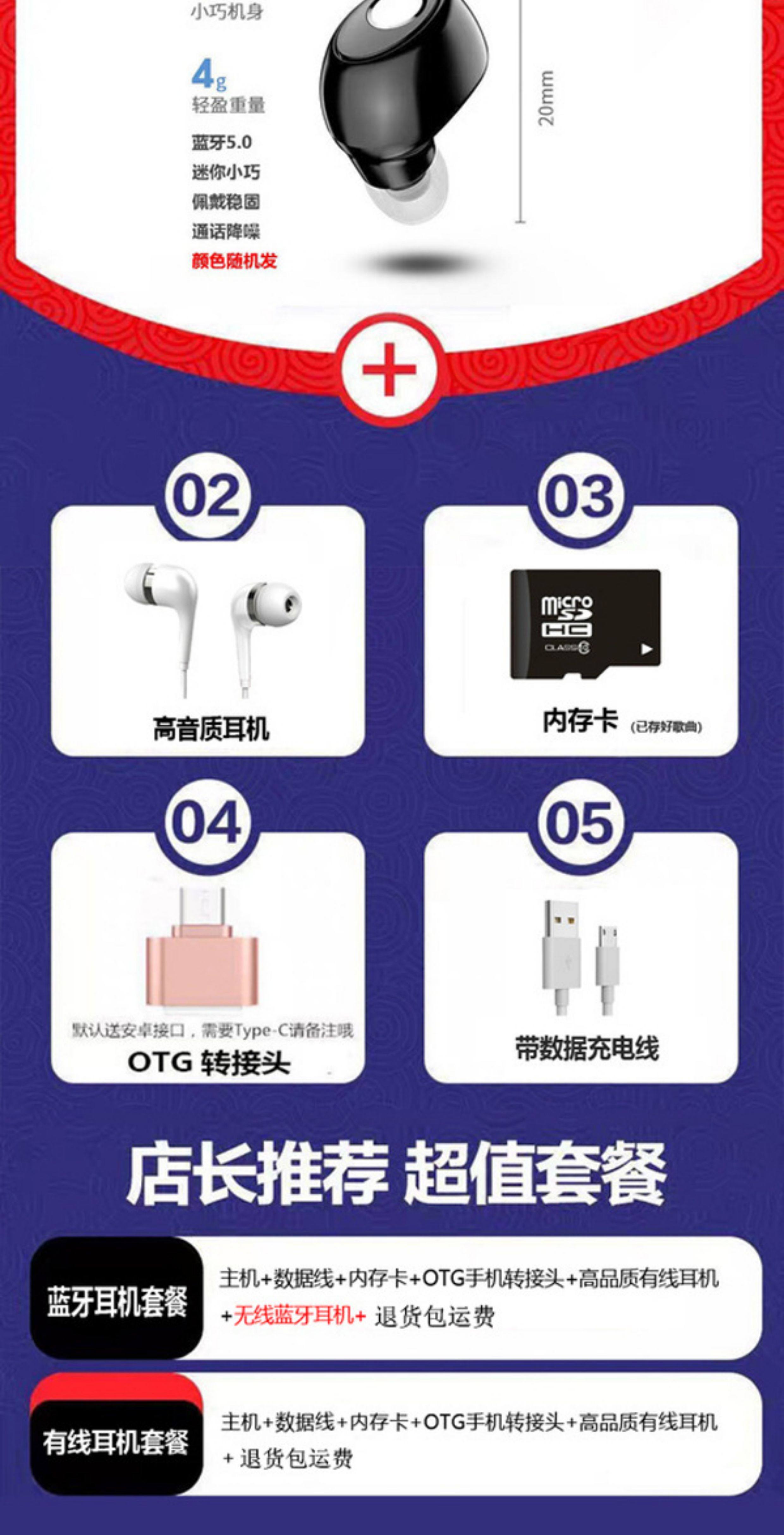 | Тип пакета: | [Bare Motor/Single Host] (У хоста нет памяти, которую нельзя прослушать карту) Нет аксессуаров, 8G [Принесение популярных песен, таких как Zhou Dong]+(Host+Hearset+Card Card+OTG+зарядная кабель), 16G [Принесение популярных песен, таких как Zhou Dong]+(Host+Hearset+Card Card+OTG+зарядная кабель), 32G [Принесение популярных песен, таких как Zhou Dong]+(Host+Hearset+Card Card+OTG+кабель зарядки), 64G [Принесение популярных песен, таких как Zhou Dong]+(Host+Hearset+Card Card+OTG+зарядная кабель), 128G [Принесение популярных песен, таких как Zhou Dong]+(Host+Hearset+Card Card+OTG+кабель зарядки), 8g [Принесение популярных песен, таких как Zhou Dong]+(Host+Hearset+Card Card+OTG+зарядная кабель)+Гарнитура Bluetooth, 16G [Принесение популярных песен, таких как Zhou Dong]+(Host+Hearset+Card Card+OTG+зарядная кабель)+Гарнитура Bluetooth, 32G [Принесение популярных песен, таких как Zhou Dong]+(Host+Hearset+Card Card+OTG+зарядная кабель)+Гарнитура Bluetooth, 64G [Принесение популярных песен, таких как Zhou Dong]+(Host+Hearset+Card Card+OTG+кабель зарядки)+Гарнитура Bluetooth, Наушники, карта памяти, зарядный кабель, 128G, bluetooth |