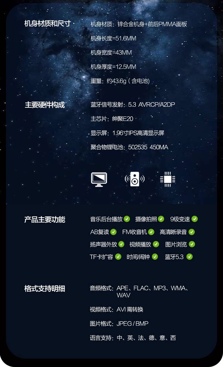| Объем памяти: | 8G 【Помощь скачать песни/романы/фильмы/английский учебник прослушивание】, 16G [Помощь скачать песню/роман/фильм/английский учебник прослушивание], 32G [Помощь скачать песню/роман/фильм/английский учебник прослушивание], 64G [Помощь скачать песню/роман/фильм/английский учебник прослушивание] |