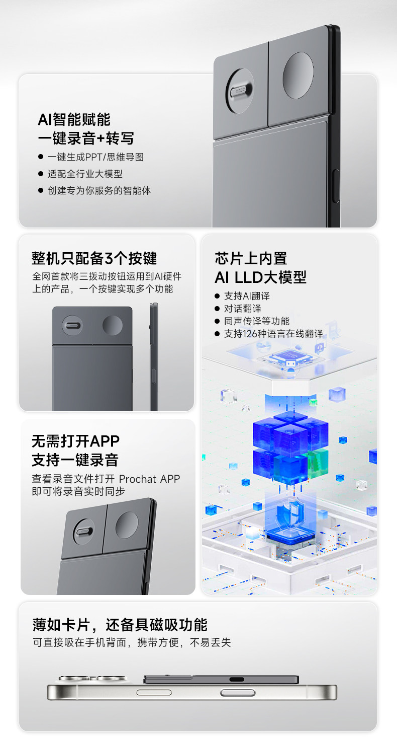 Записывающая ручка Prechat с искусственным интеллектом расшифровывает и переводит записи встреч портативной записывающей карты в текстовую сводную интеллектуальную карту.