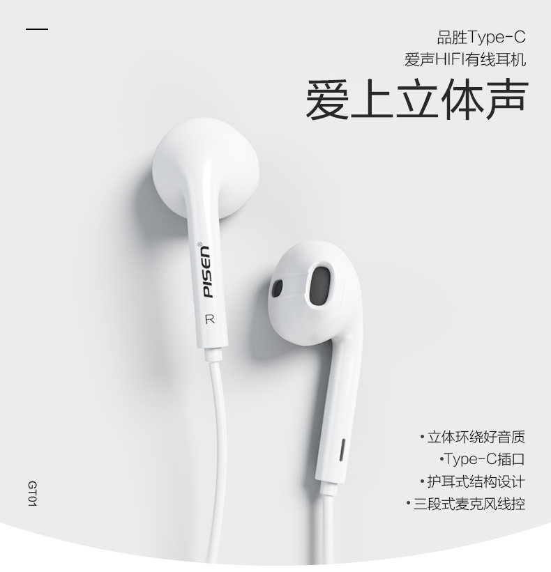 Pin Sheng Type-C Universal Mobile Phone Wired Line Hearnet GT01 с помощью стерео-полуавревых новых продуктов Mai Hifi