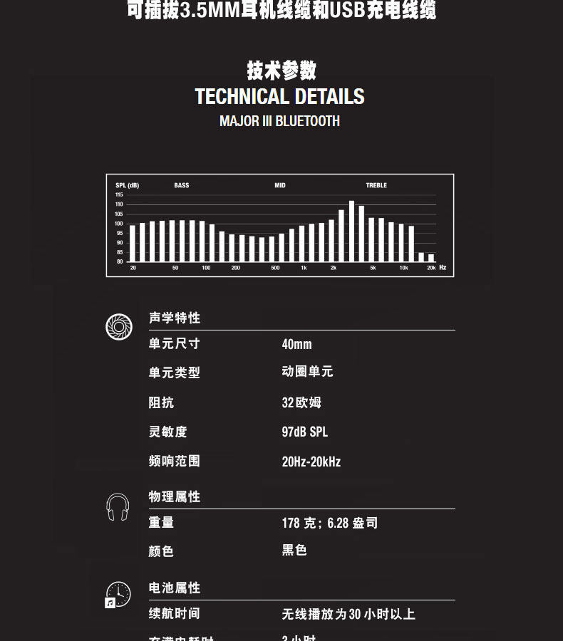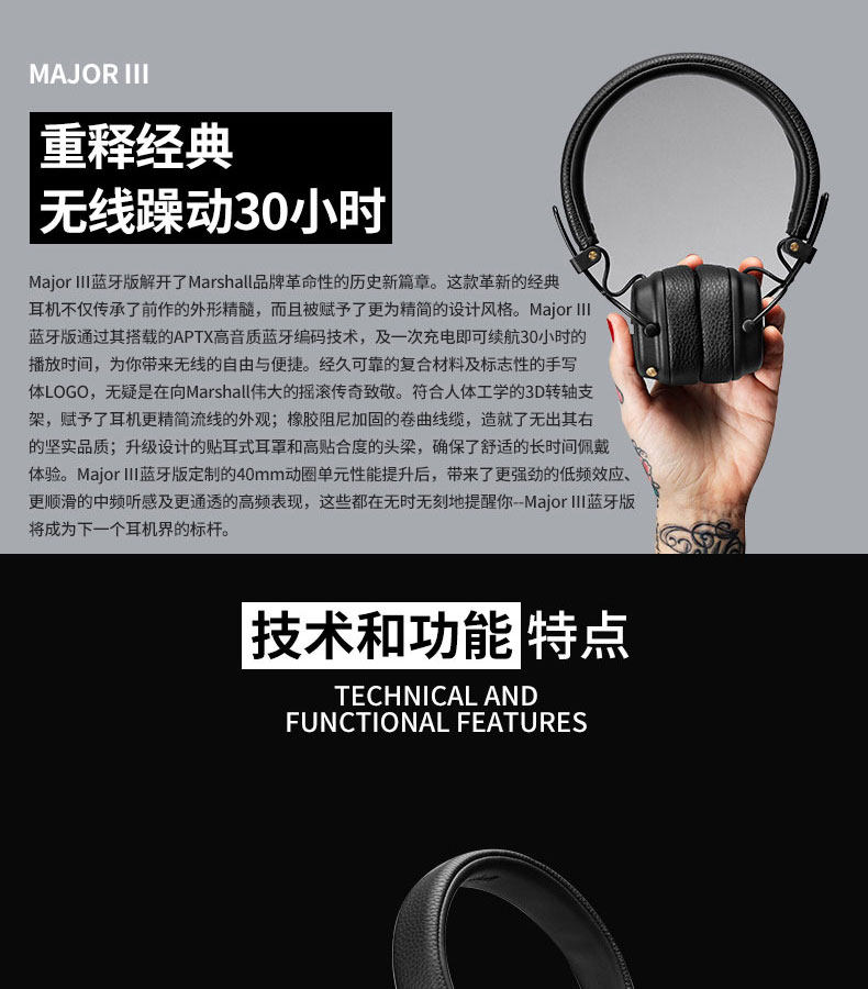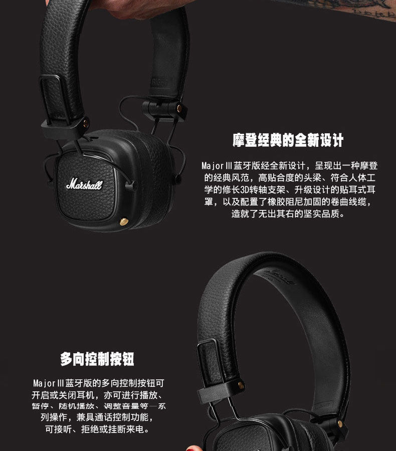 Marshall Major III 3 поколения беспроводной Bluetooth Heavy Bass Wear Наушники три поколения III