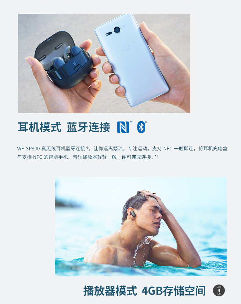 Sony/索尼 Беспроводные наушники, музыкальное спортивное хранилище, ушные наклейки для плавания, беруши, bluetooth, MP3, 4G