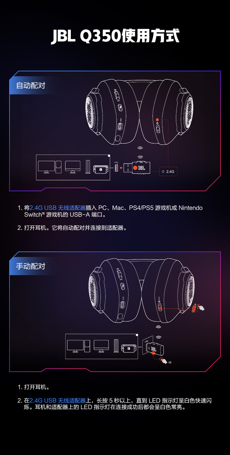 [Официальная подлинная] JBL Quantum Storm Q350 Беспроводная гарнитура игра с гарнитурой с гарнитурой с гарнитурой
