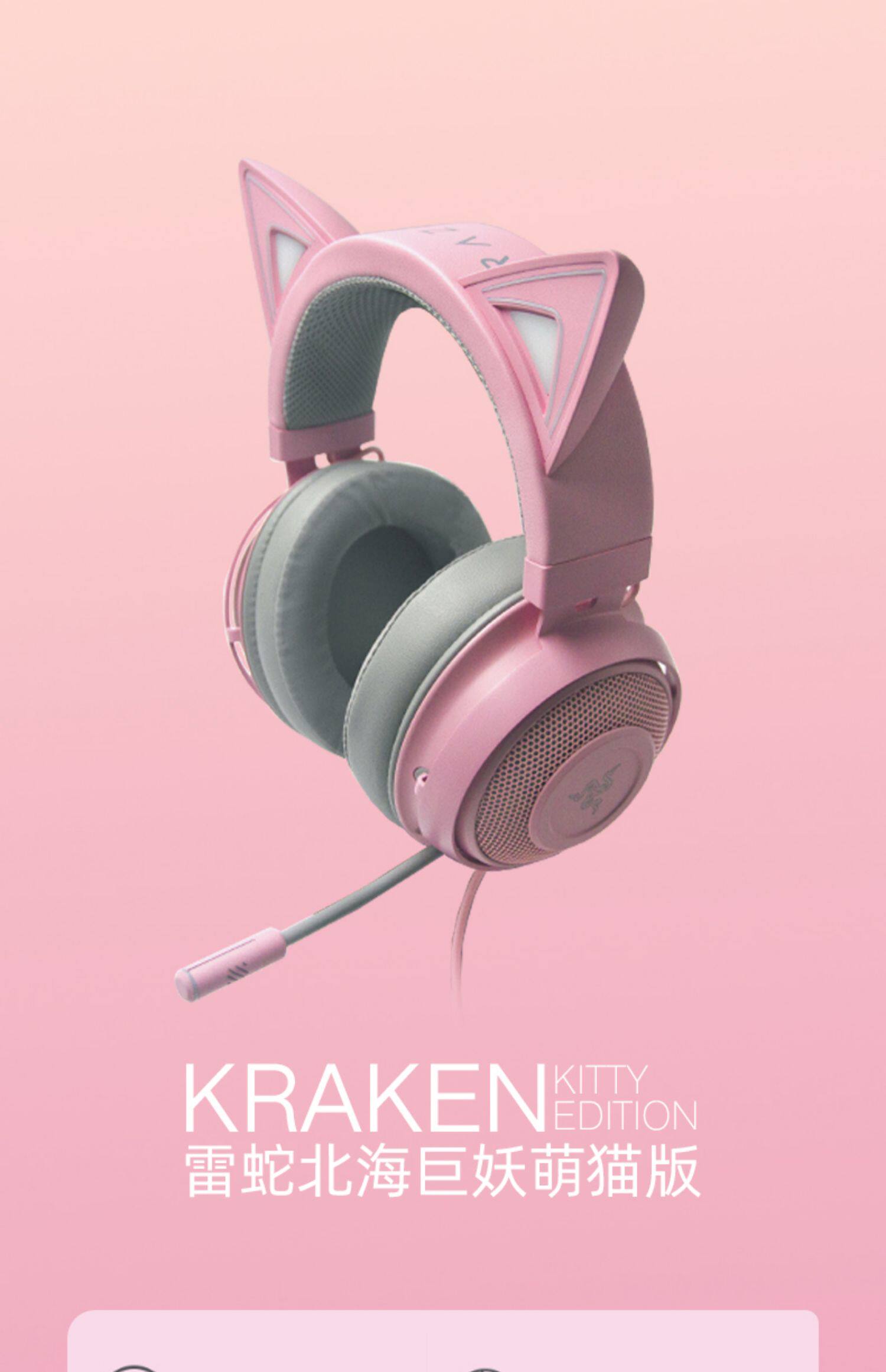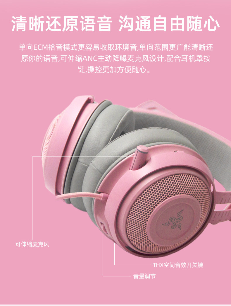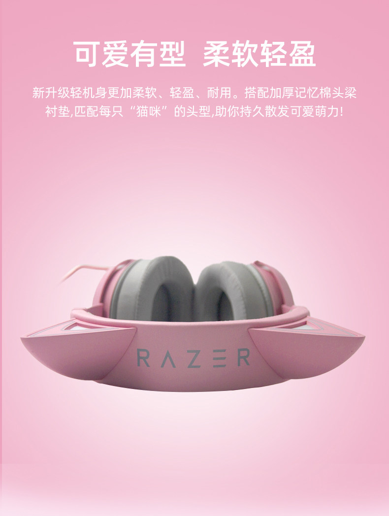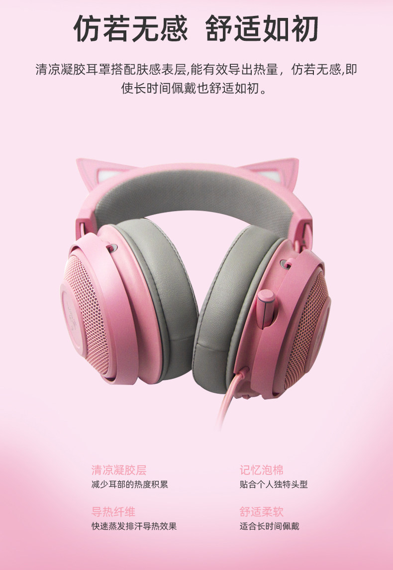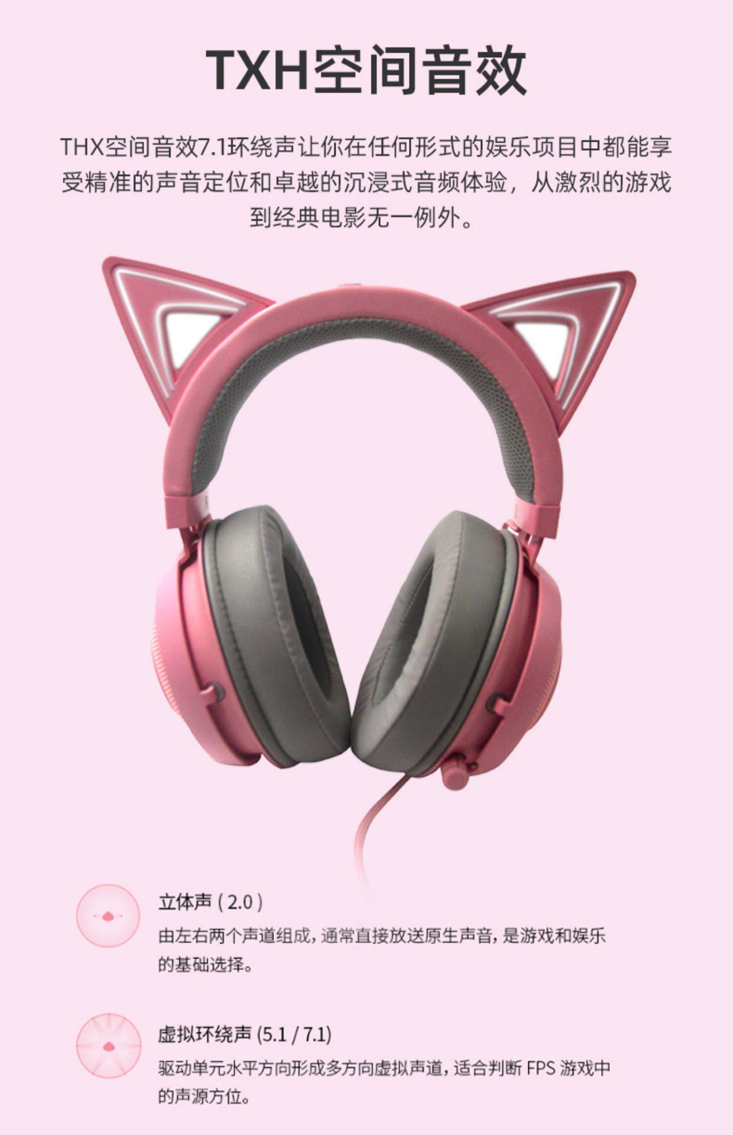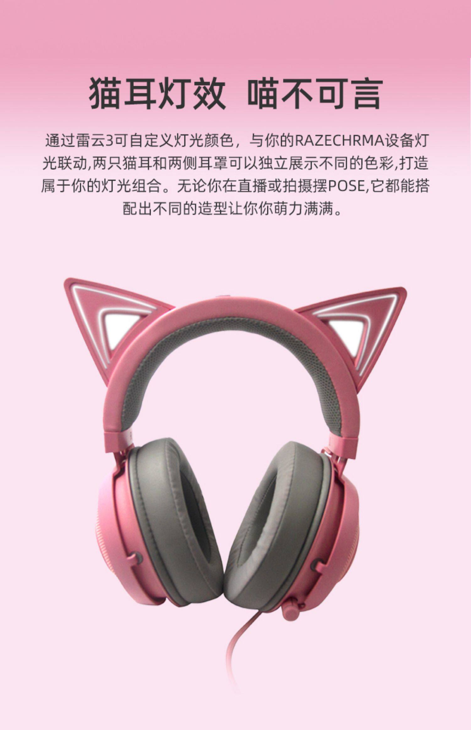 Razer/雷蛇 Beihai Demon Meng Cat Edition Pink Crystal USB носит Wired E -Sports Computer Game Наушники с MAI