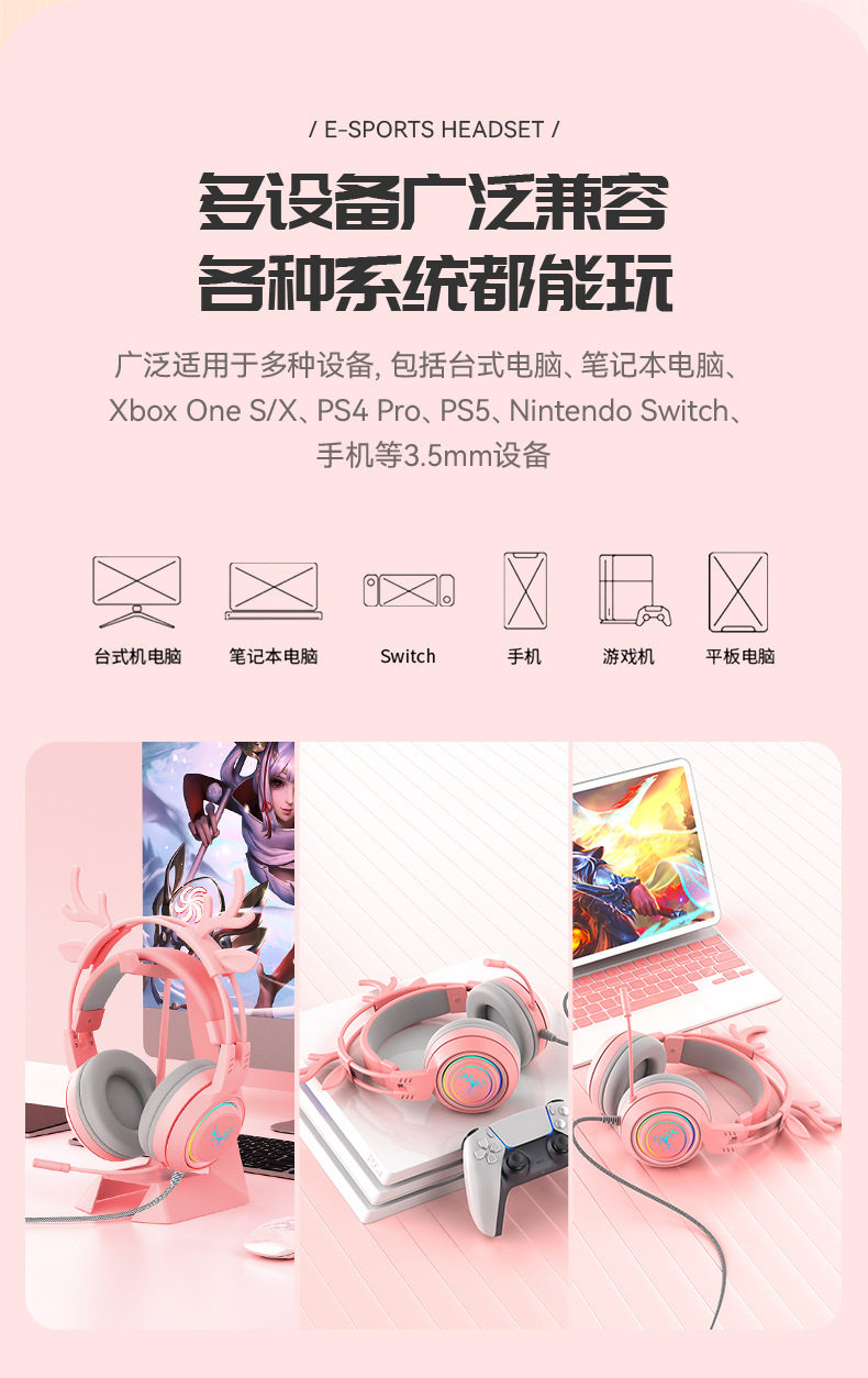 Наушники, розовый милый маленький игровой ноутбук