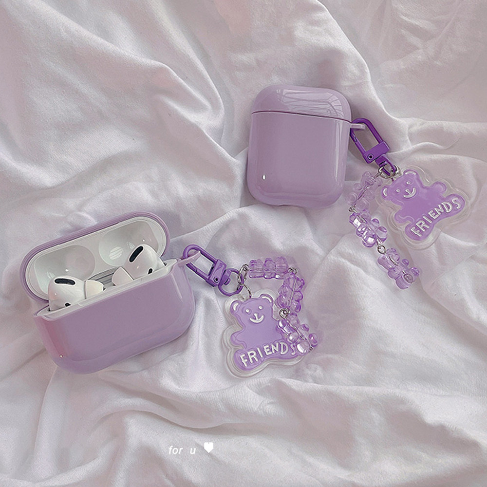 Симпатичный корпус с фиолетовым медведем для Apple Air Pods 1 2 Case для