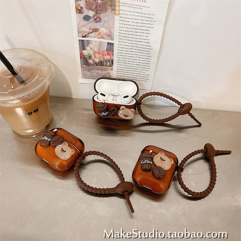 Apple, трехмерный совместимый защитный чехол, наушники, с медвежатами, 3, bluetooth, pro2