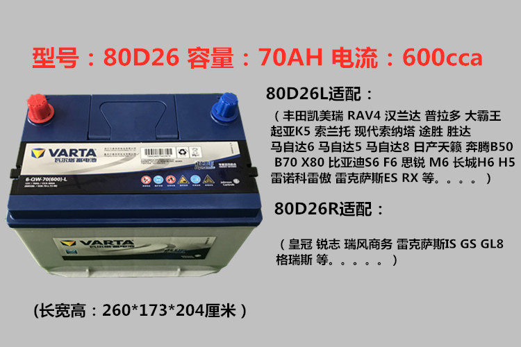 - Valta 80D26/70AH