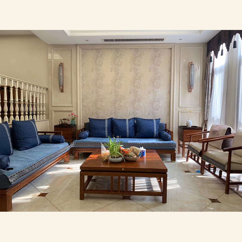 阅梨 Китайский традиционный домашний гостиная Wanxin диван с тремя личными двойными подлокотниками из розового дерева