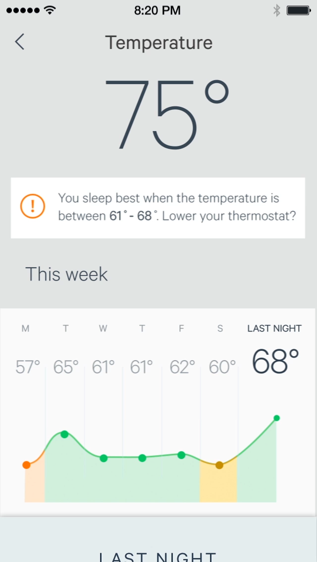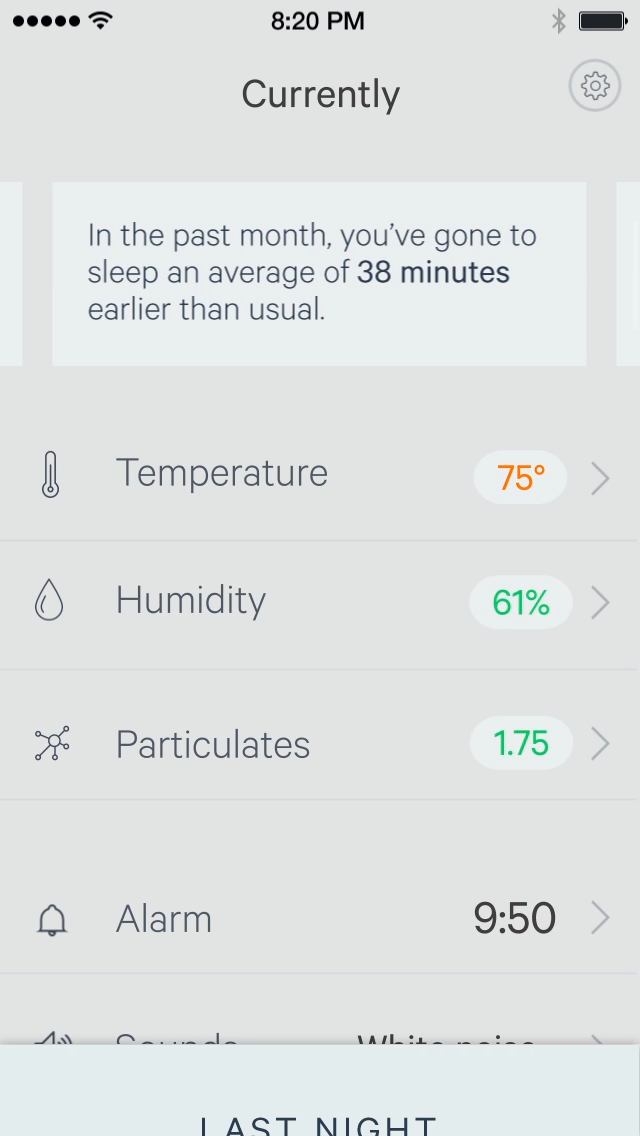 На следующем рисунке показано, что в приложении, поддерживающем приложение, будет отображаться качество сна и данные окружающей среды: