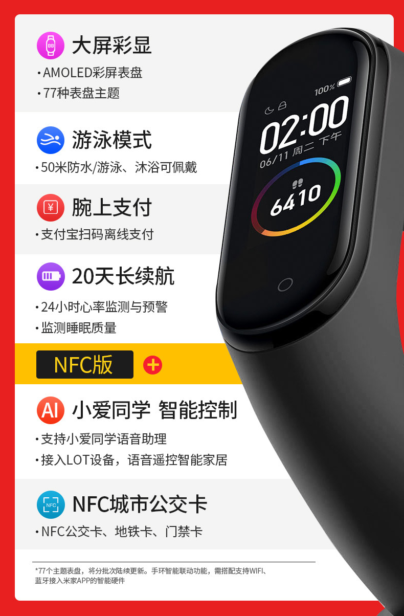 Браслет Xiaomi 5NFC Версия ручного кольца 4 -го поколения Умное водонепроницаемое время для обнаружения часов.