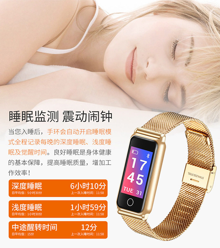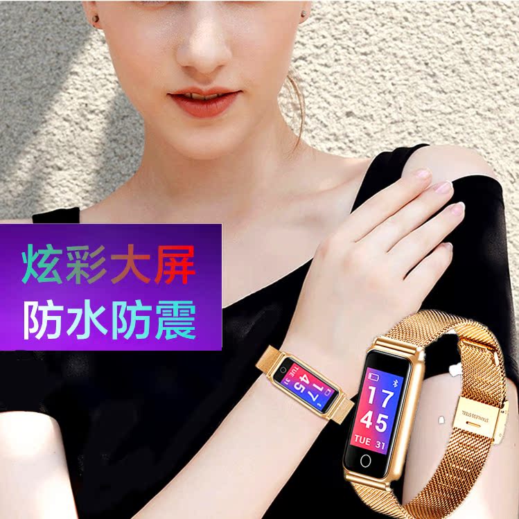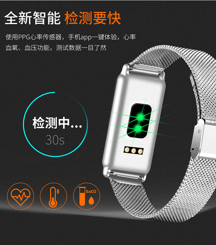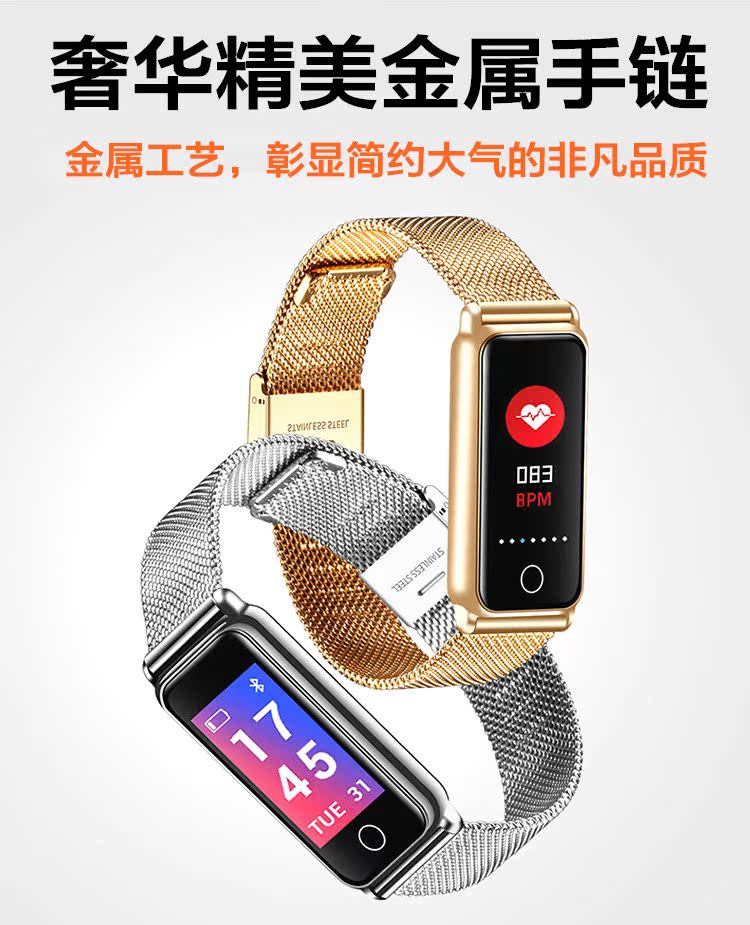 Модные металлические водонепроницаемые умные часы подходит для мужчин и женщин, отслеживает сердцебиение, измеряет давление