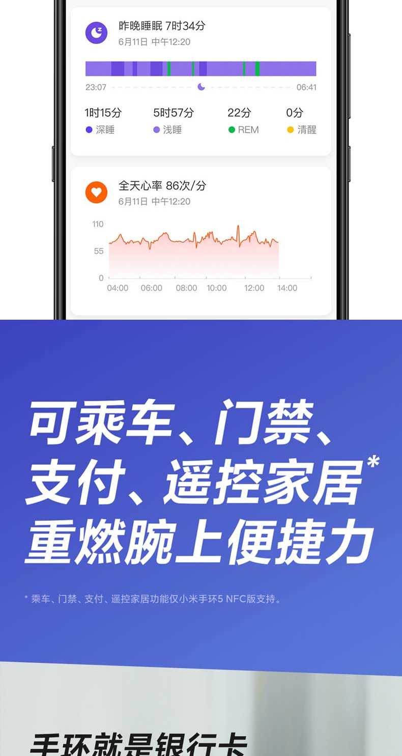 [В складе] Браслет Xiaomi 5NFC версия Smart Sports Watch Маленькое ручное кольцо 4 -колорное экране водонепроницаемый сердечный ритм Step Bluetooth Call напоминает мониторинг сна оригинальный подлинный