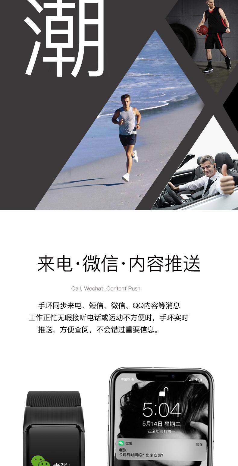 Цвет экрана интеллектуальные спортивные часы с ручным кольцом измеряют частоту сердечного ритма мужское и женское кровяное давление водонепроницаемое, подходящее для Vivooppo многофункциональное шаг устройства, снабжение Sleep Bluetooth Energy, чтобы помочь попола