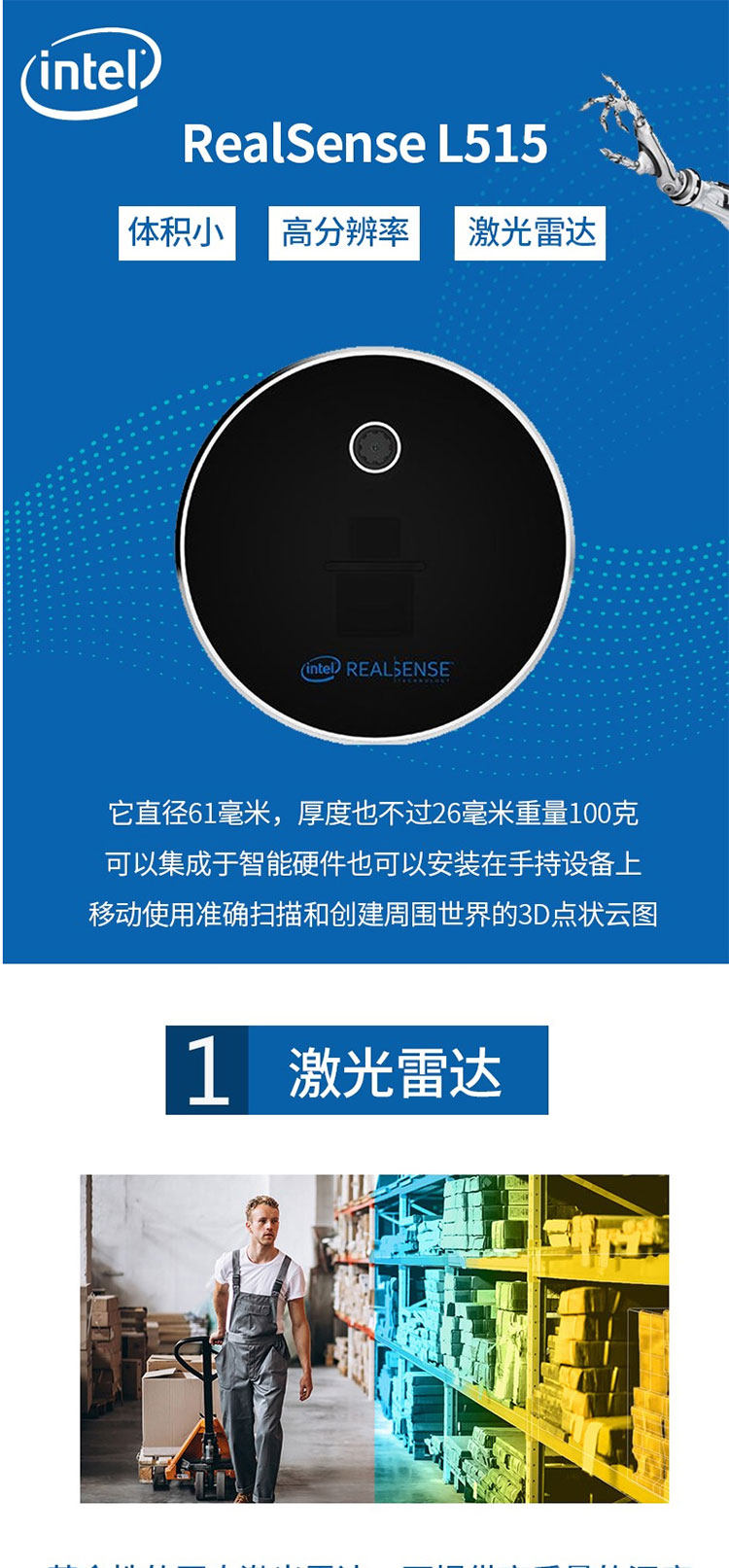 Intel LiDAR Camera RealSense L515 Лазерная сплошная радара глубокая камера