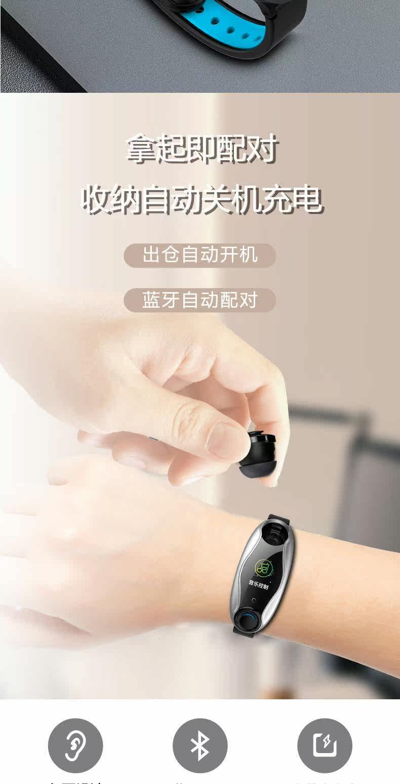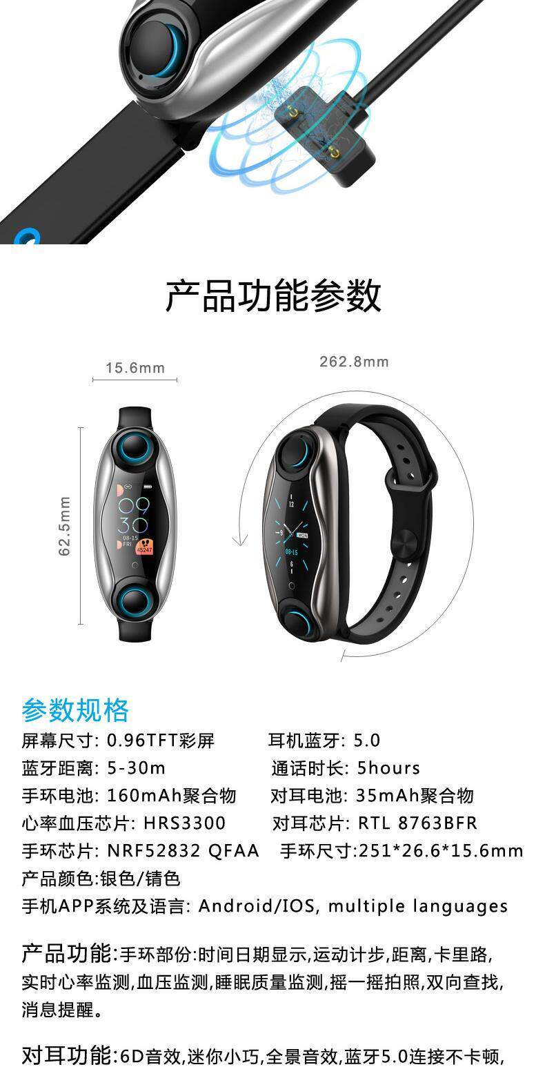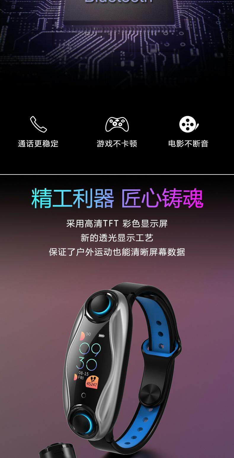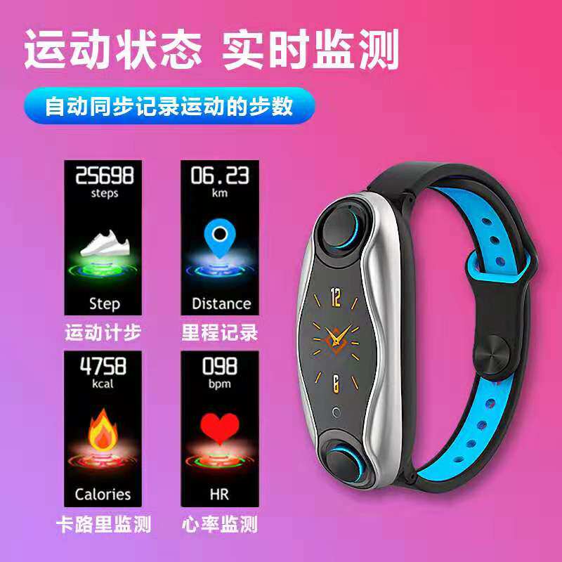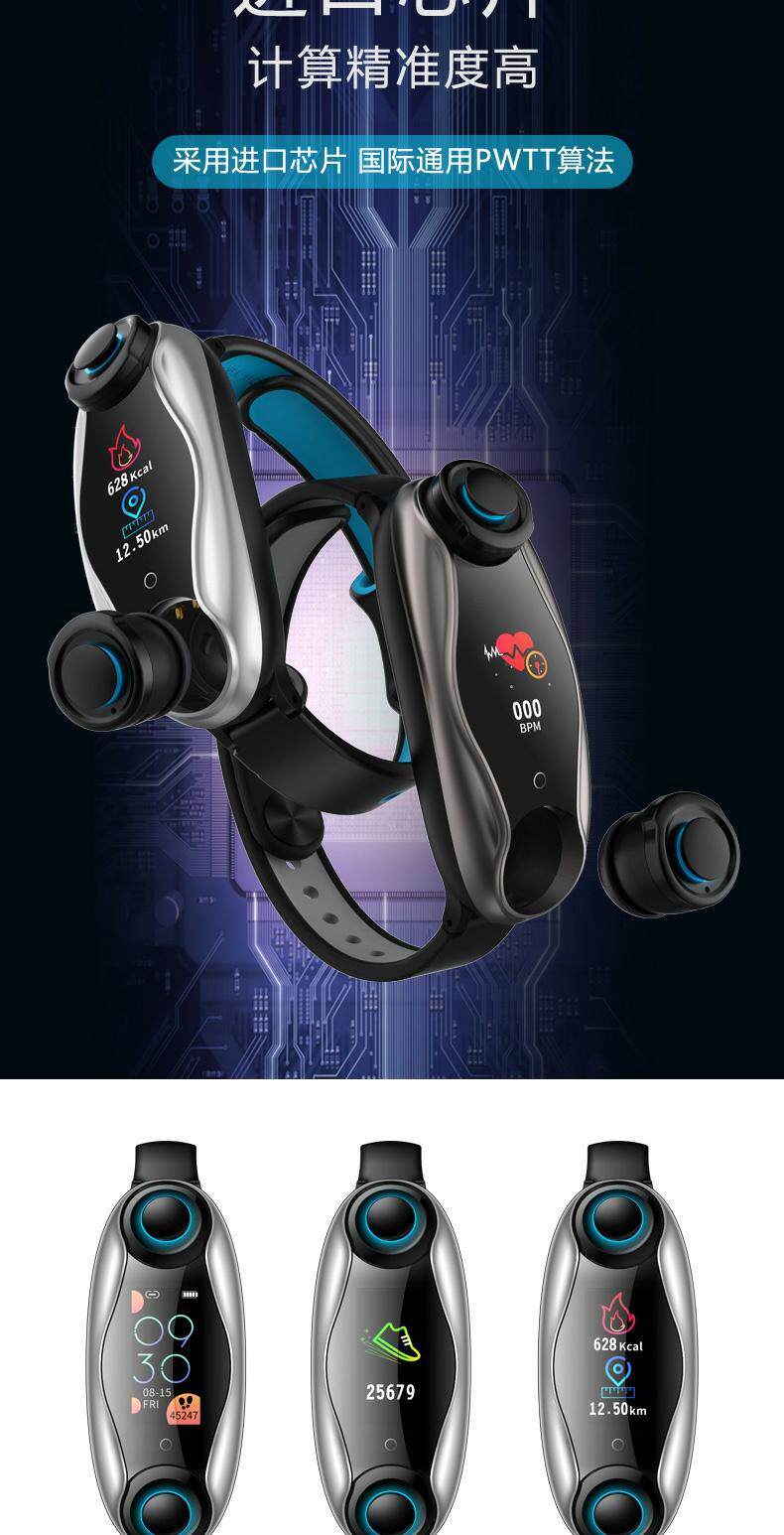 Модные умные водонепроницаемые наушники, браслет, есть синхронизация с телефоном, часы для взрослых подходит для мужчин и женщин, bluetooth, 2 в 1, отслеживает сердцебиение, измеряет давление