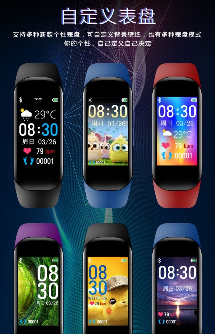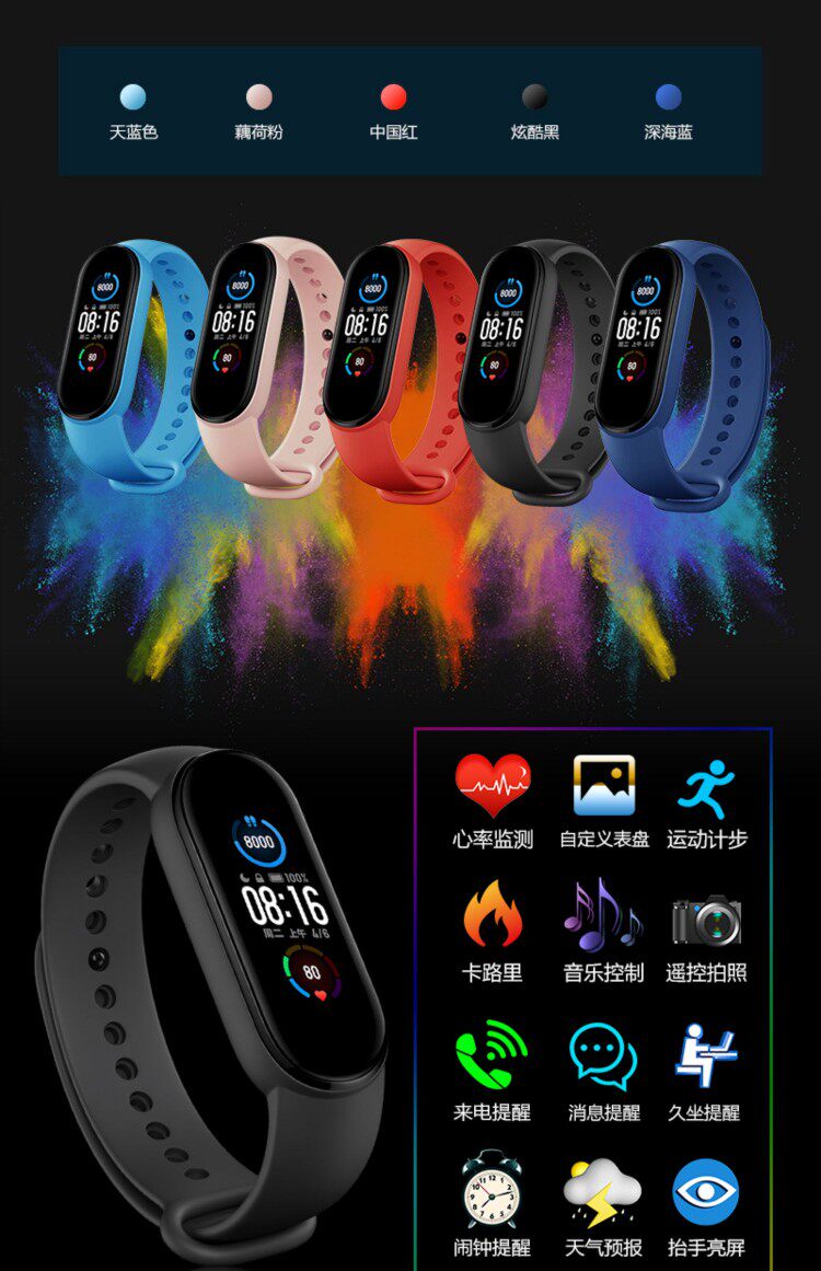 Цвет платформы экран много -функциональный силиконовый интеллектуальный спортивный шаг студенческий браслет.