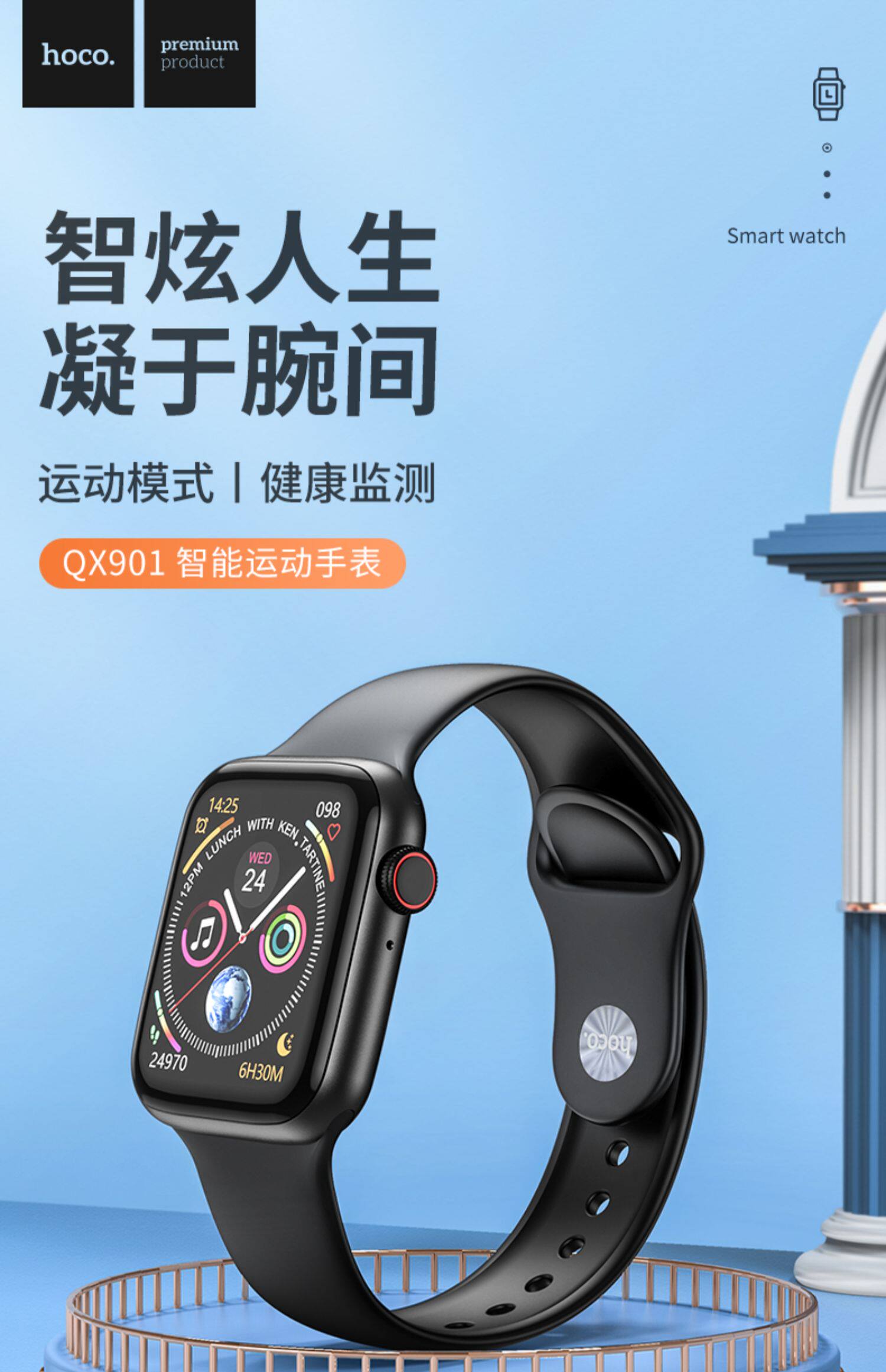 Hoco. Haoku QX901 Smart Sports Watch Applicable Motater Game Cardiac Bracelet Call HD
