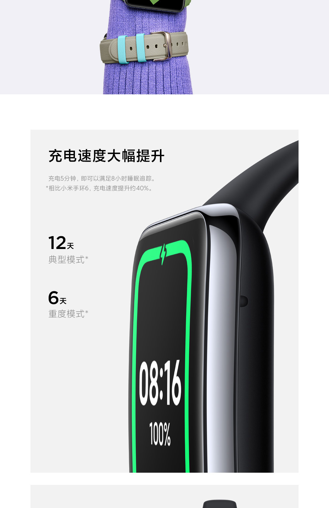 - Браслет Xiaomi 7 растягивает синий