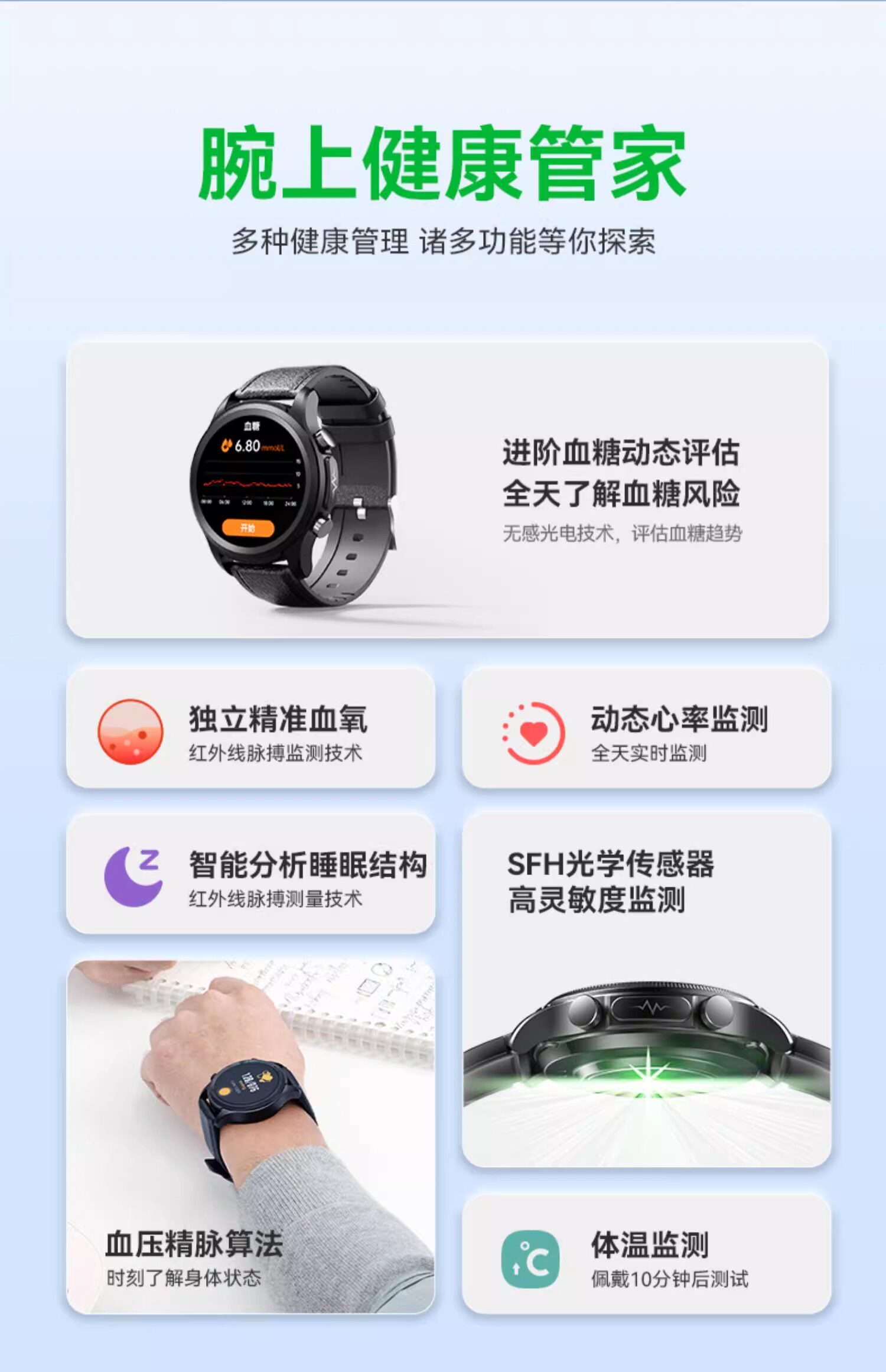 Умные часы, высокоточный термометр, ростомер, спортивное сердце для пожилых людей, браслет подходит для мужчин и женщин, bluetooth, отслеживает сердцебиение