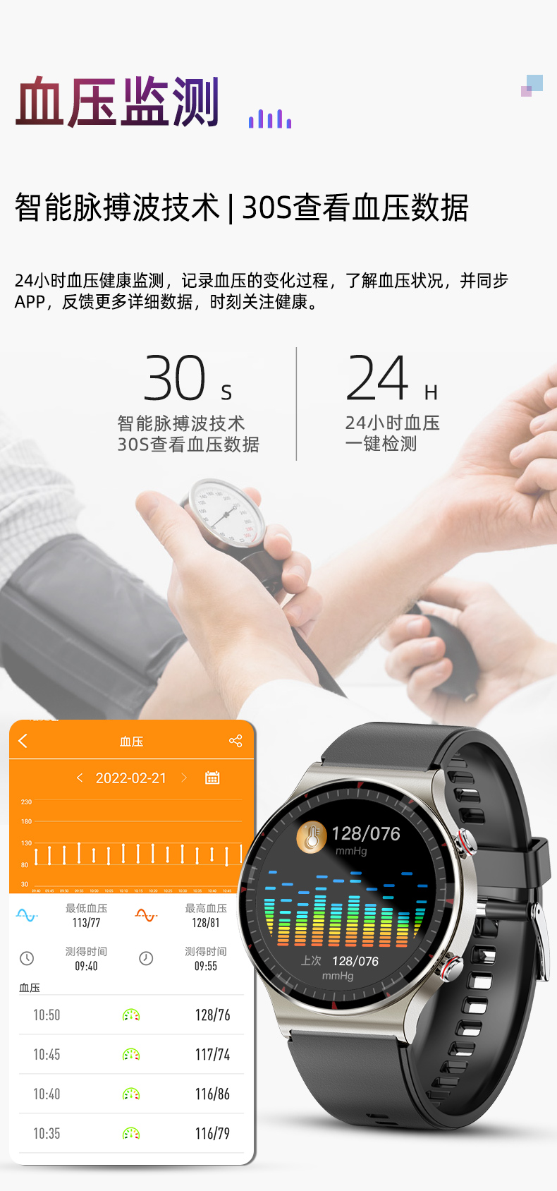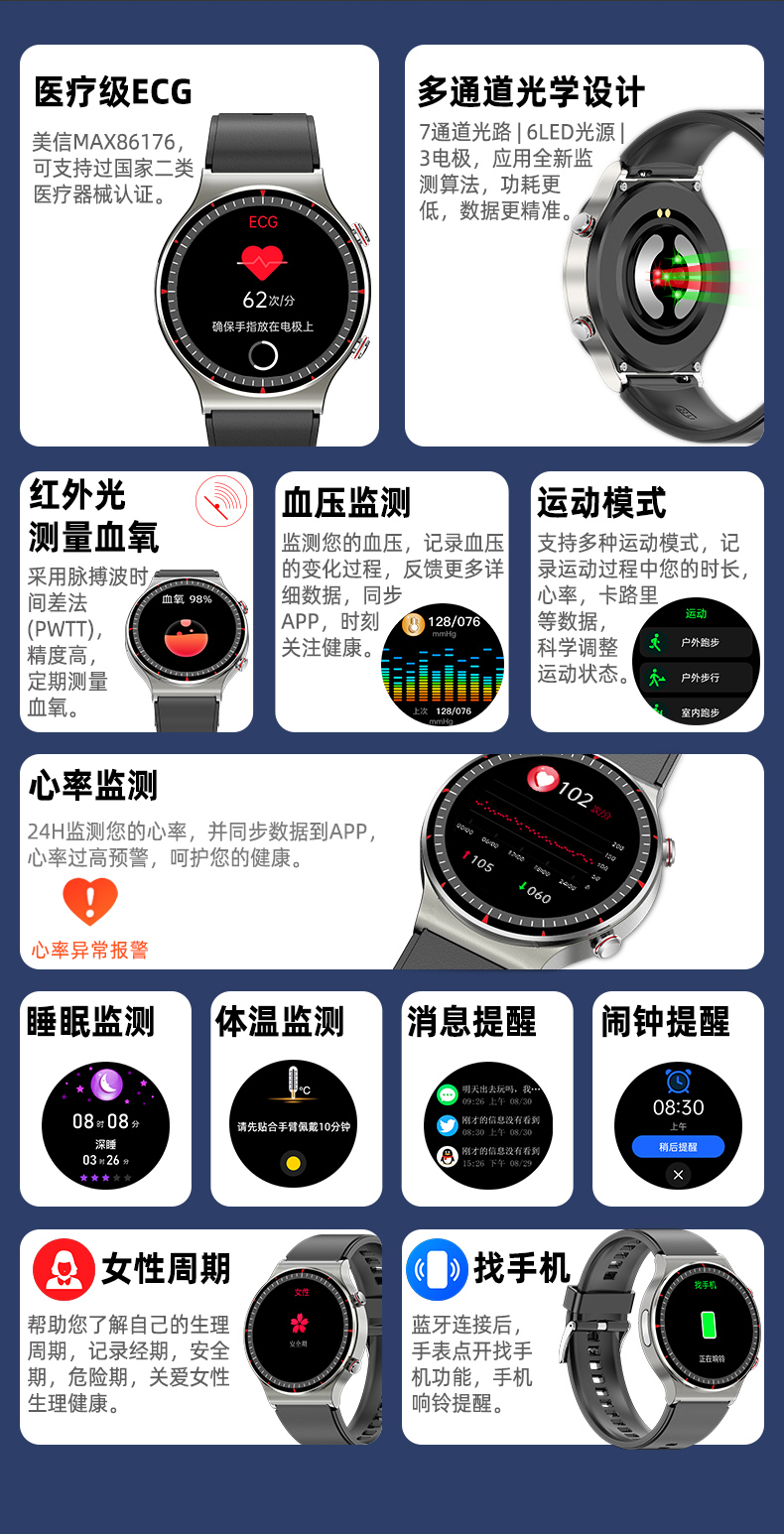 Apple, высокоточный браслет, сигнализация, универсальный водонепроницаемый спортивный термометр подходит для мужчин и женщин для пожилых людей, отслеживает сердцебиение