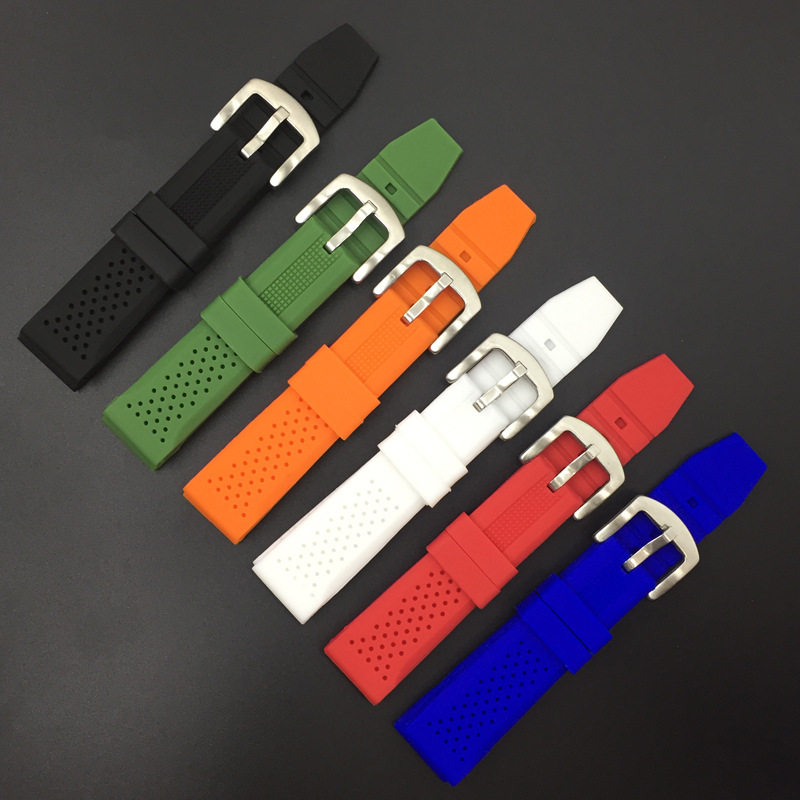 Черный водонепроницаемый дышащий силиконовый ремешок для часов, часы, 24mm