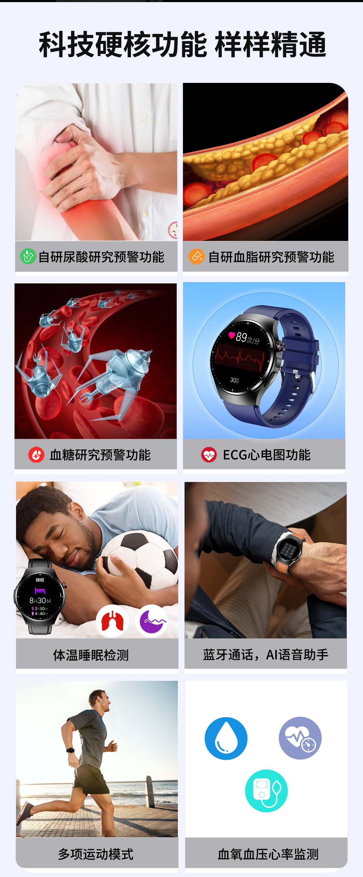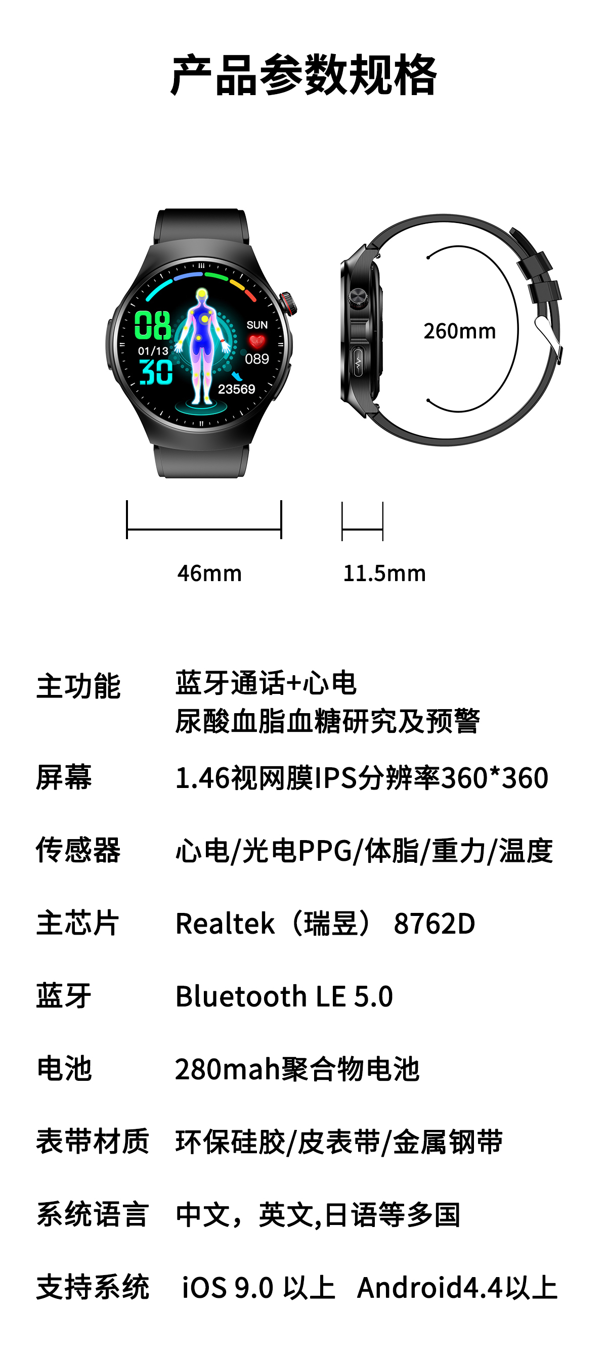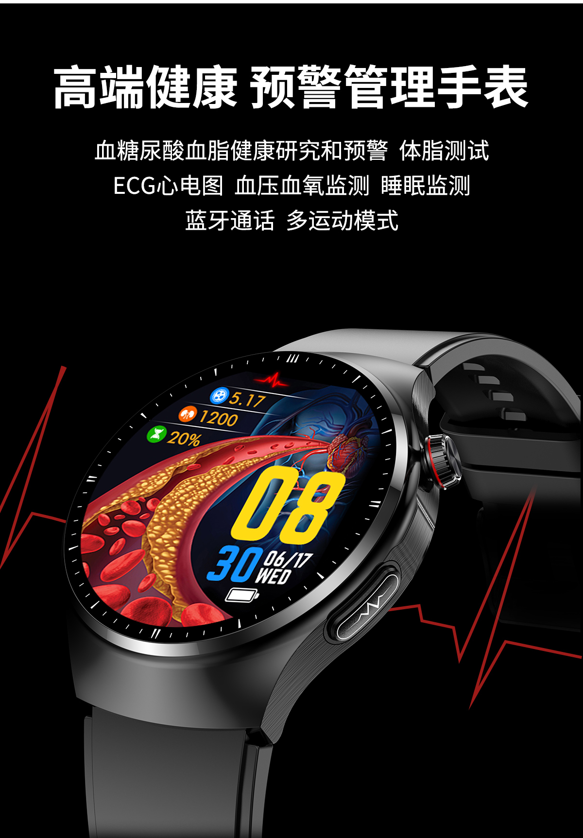 [Медицинский класс] Не -инвазивное глюкозовое глюкозовое давление в крови мочевой кислоты и липидные липидные часы с высоким уровнем эко -эко