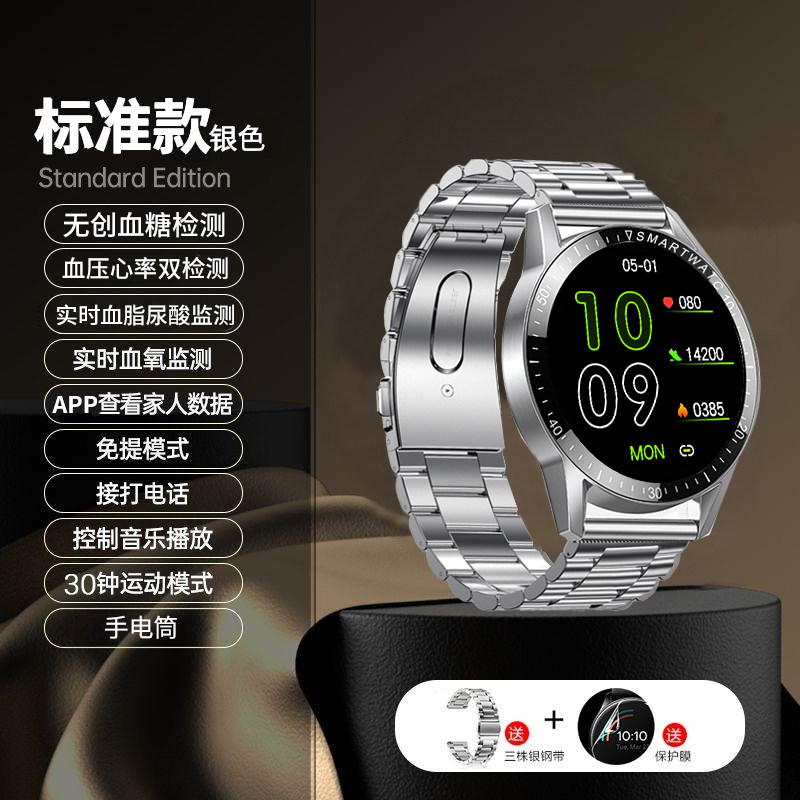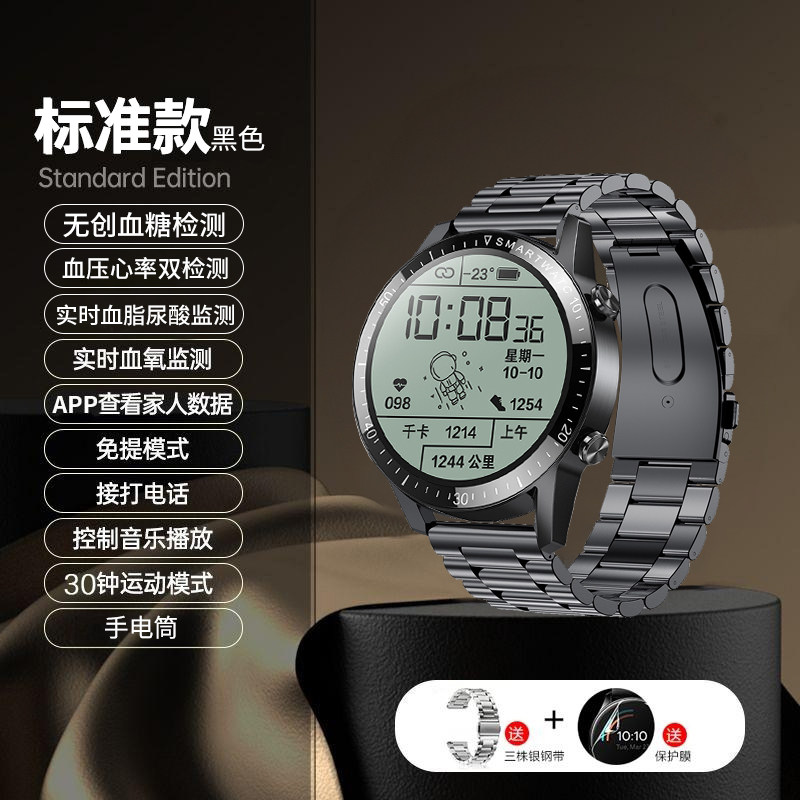 Круглая экрана с высоким уровнем определения глюкозы глюкозы для кровяного давления Смотрение Умная кардиопатическая кровь кислородная кислородная кислорода мониторинг крови браслет Стандартная версия мониторинга липидов крови.