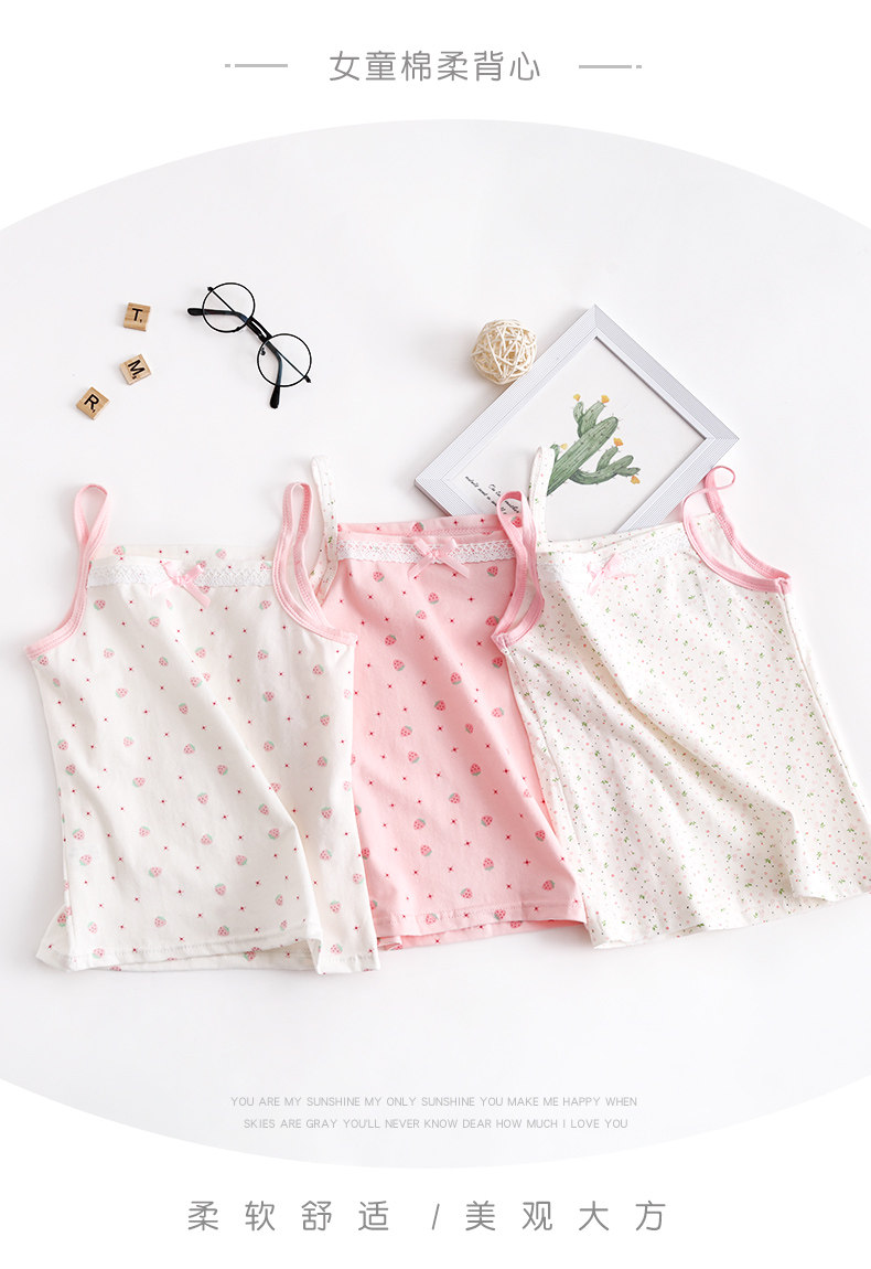 Майка топ, детское нижнее белье без рукавов для девочек, с лямками