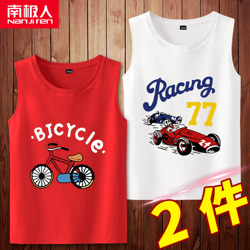 Детский тонкий хлопковый жилет, летний красный гоночный автомобиль, футболка для мальчиков без рукавов, в западном стиле, принт