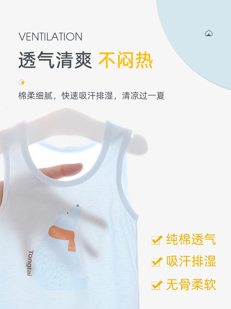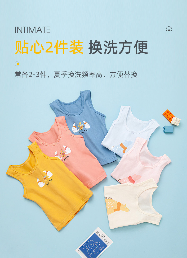 童泰 Детская летняя тонкая майка, детский хлопковый топ с чашечками, летняя одежда для мальчиков без рукавов