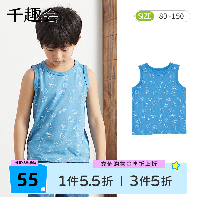 Летнее нижнее белье, динозавр, базовый приятный телу хлопковый жилет для мальчиков, детская одежда, в западном стиле