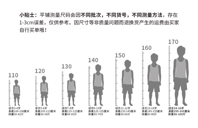 | Справочная высота: | 175 (130 [7-8 лет, рост 115-125см, вес 44-60 фунтов]), 48(140 [9-10 лет, рост 125-135см, вес 50-70]), 52 (150 【11-12 лет, высота 135-145, вес 60-80 кот】), 59 (160 【13-14 лет, высота 155-165, вес 76-90 кот】), 66 (170 【15-16 лет, высота 160-170, вес 80-100 кот】), 80 (110 【3-4 года, высота 100-109, вес 30-42 кот】), 85 (120 【5-6 лет, высота 105-115, вес 36-54 кот】) |