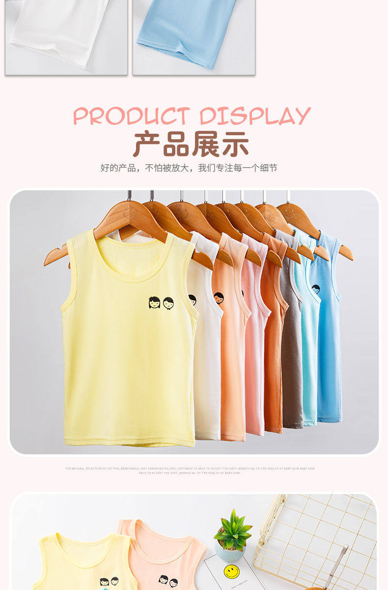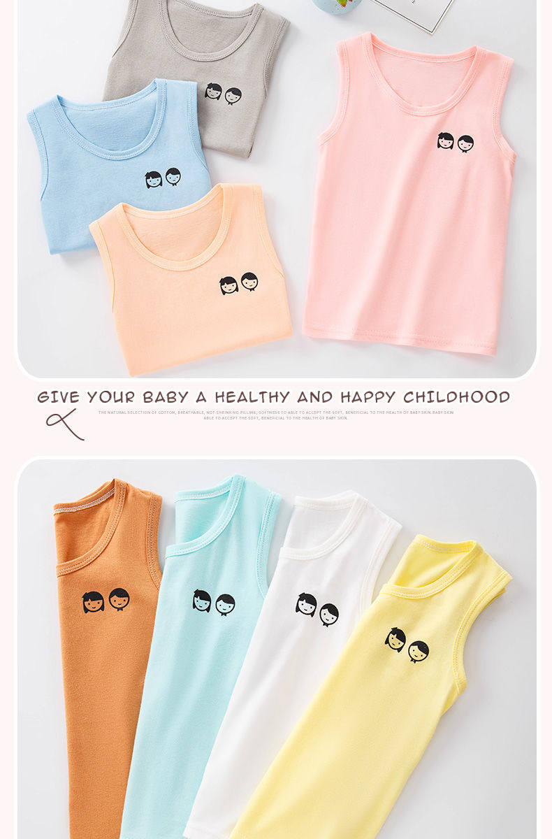 Хлопковый летний детский осенний жилет, цветное базовое приятное телу детское тонкое нижнее белье для мальчиков без рукавов