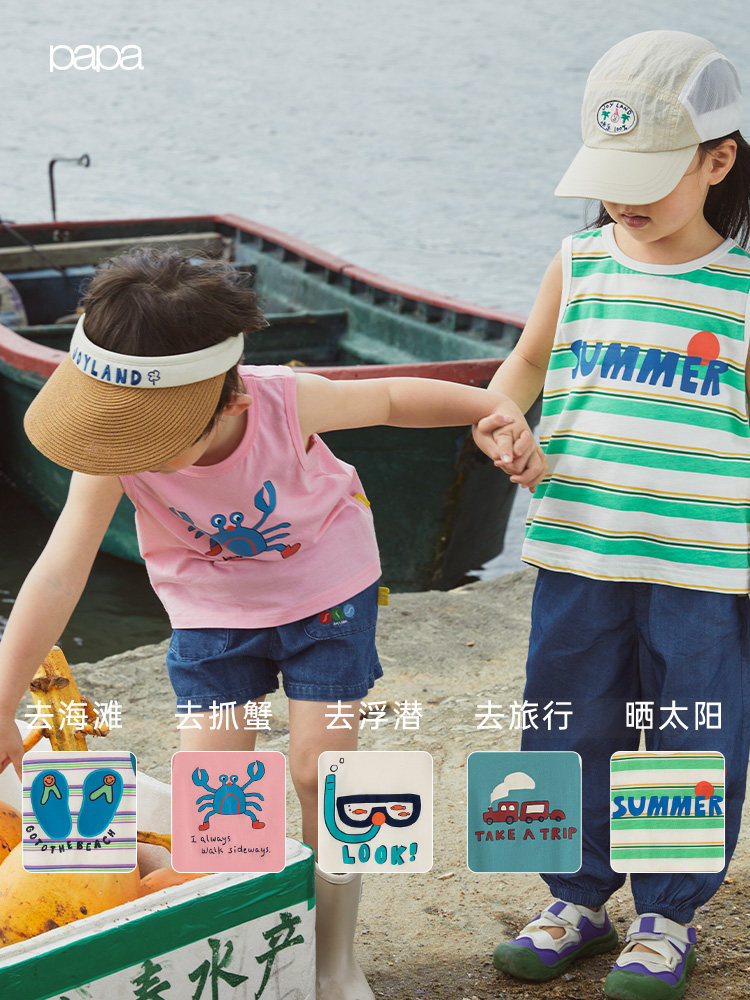 Летний легкий и тонкий жилет подходит для мужчин и женщин для девочек для отдыха, детская хлопковая футболка, в западном стиле