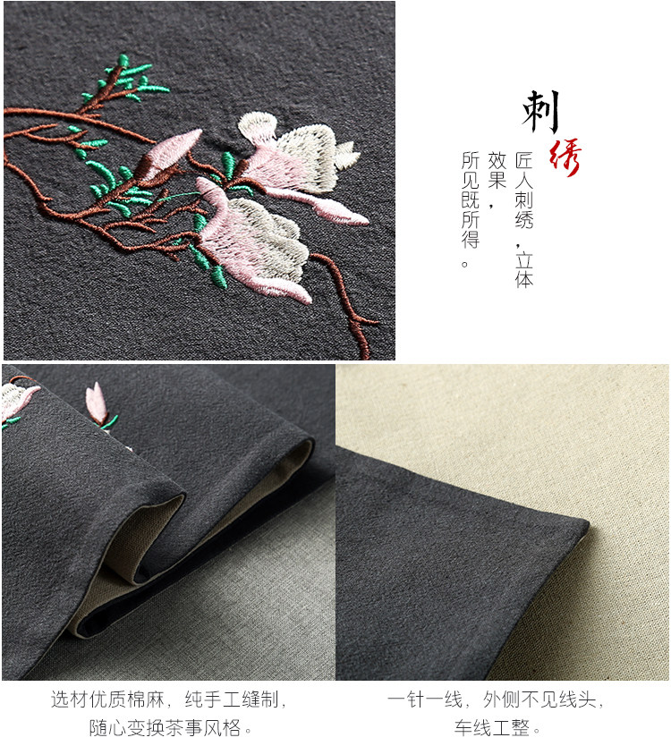 Хлопок, льняное чайное сиденье вышитое настольное флаг флаг китайского стиля теплоизоляция чайная чайная накладка Китайская вышитая столовая флаг