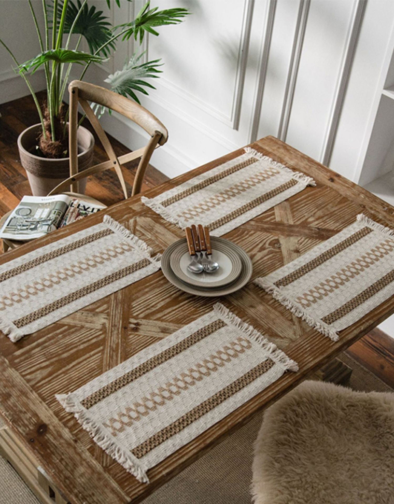 Плетеный прямоугольный декор, из хлопка и льна, в американском стиле, французский стиль