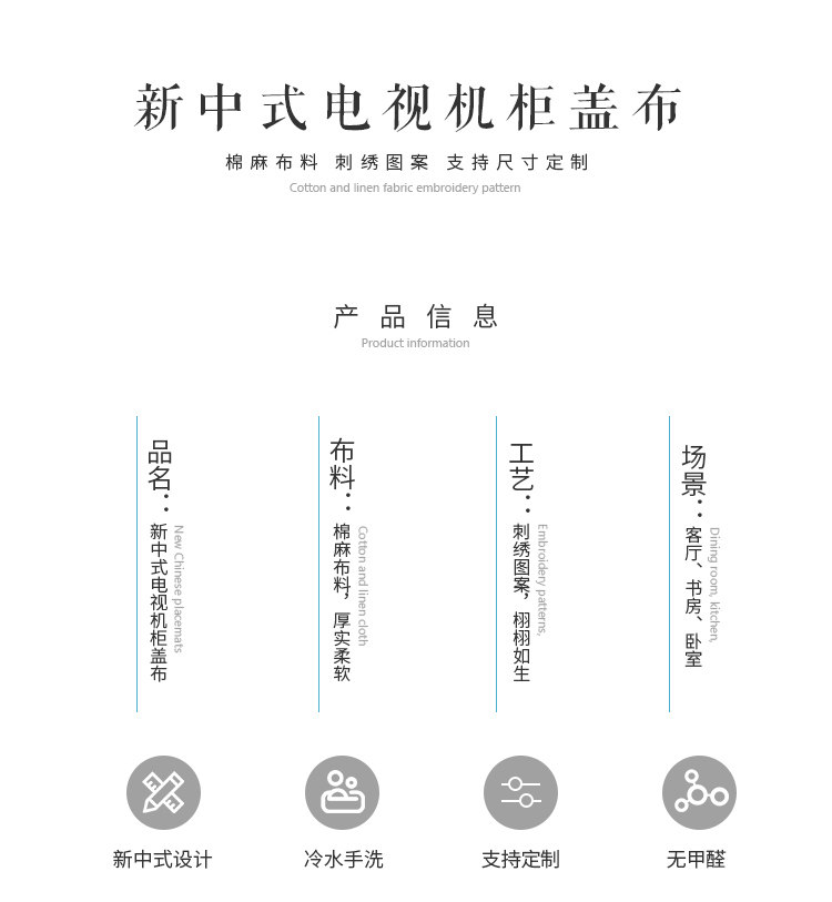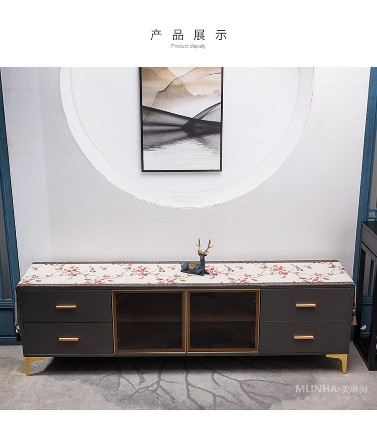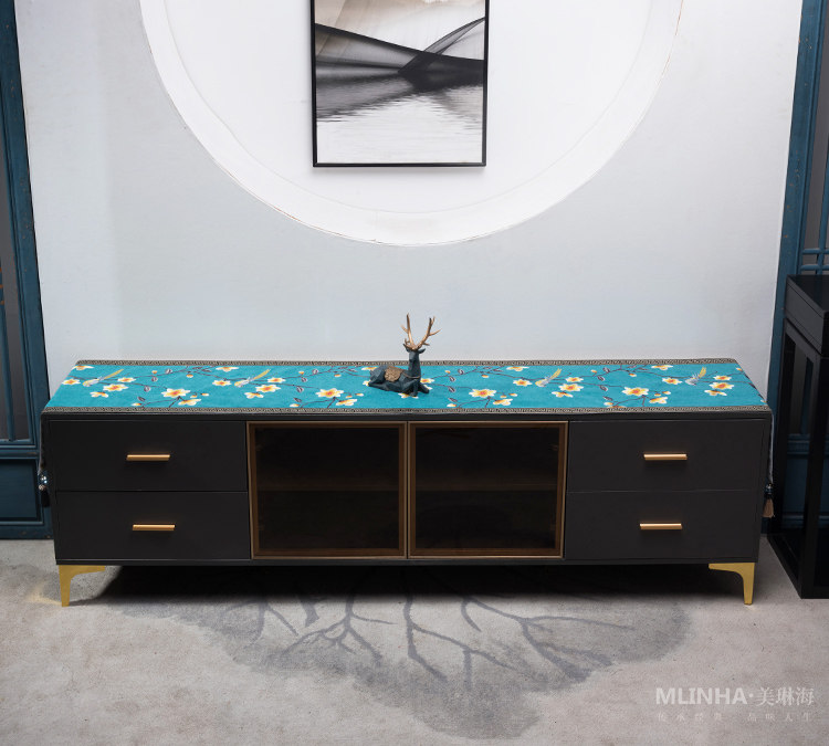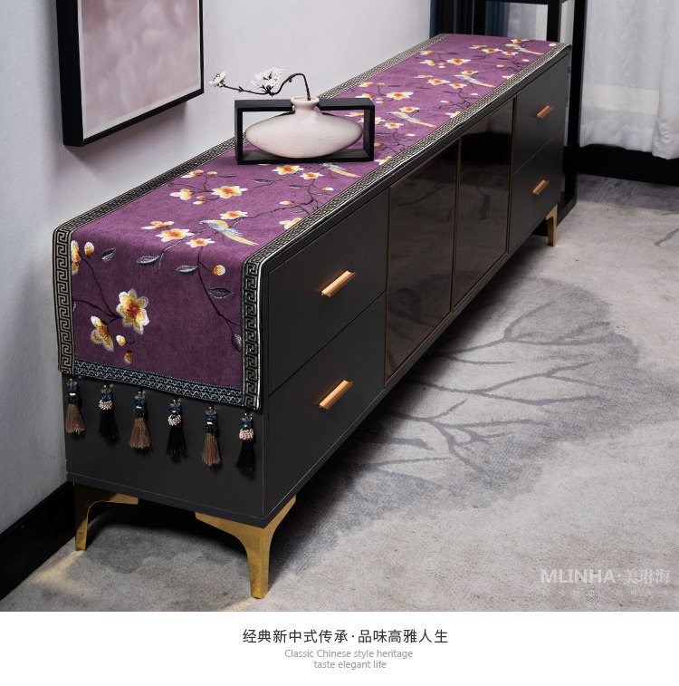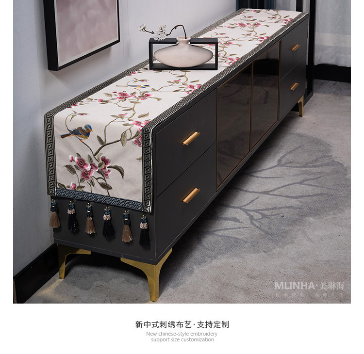 Новый китайский телевизионный шкаф, крышка, легкая роскошь, простой домашний пары с высоким содержанием ткани столовая столовая ткань кровать для шарф -шарф флаг кровать