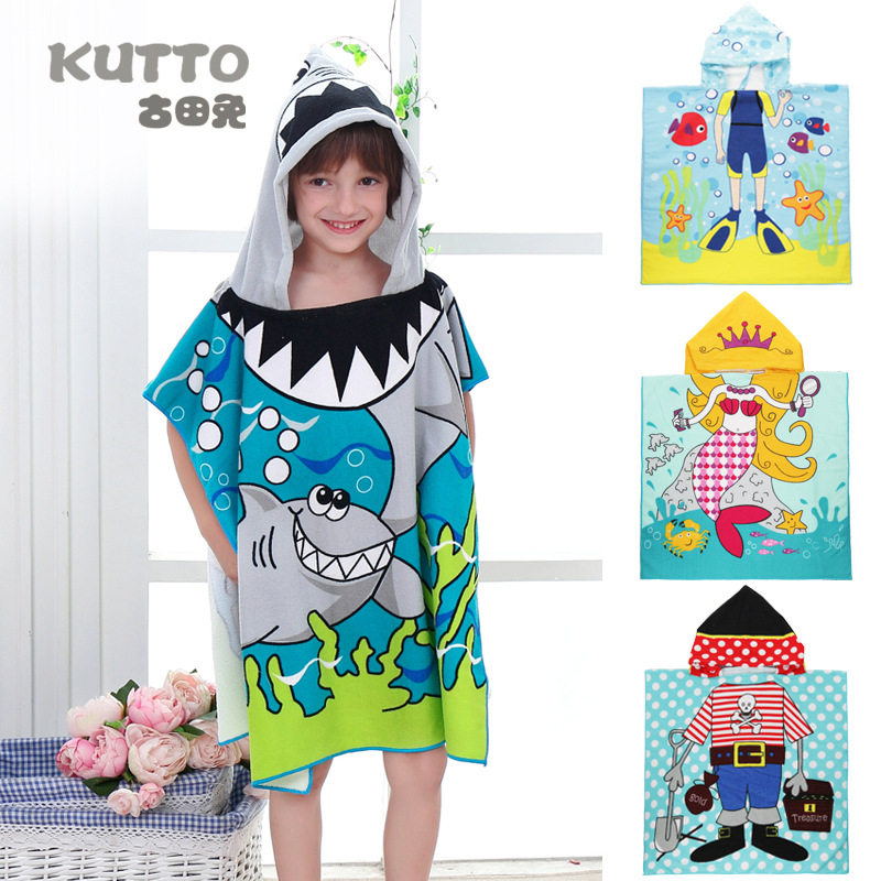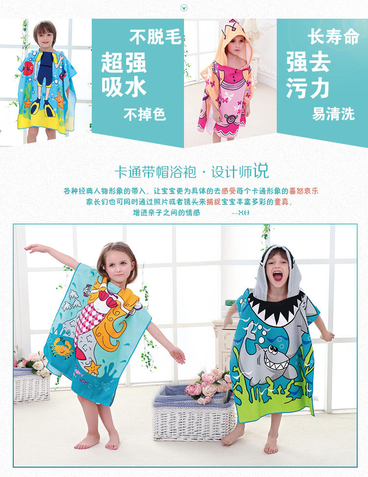Мультяшное детское банное полотенце, хлопковый плащ, быстросохнущая детская шапочка, пляжный детский банный халат с капюшоном, хорошо впитывает воду