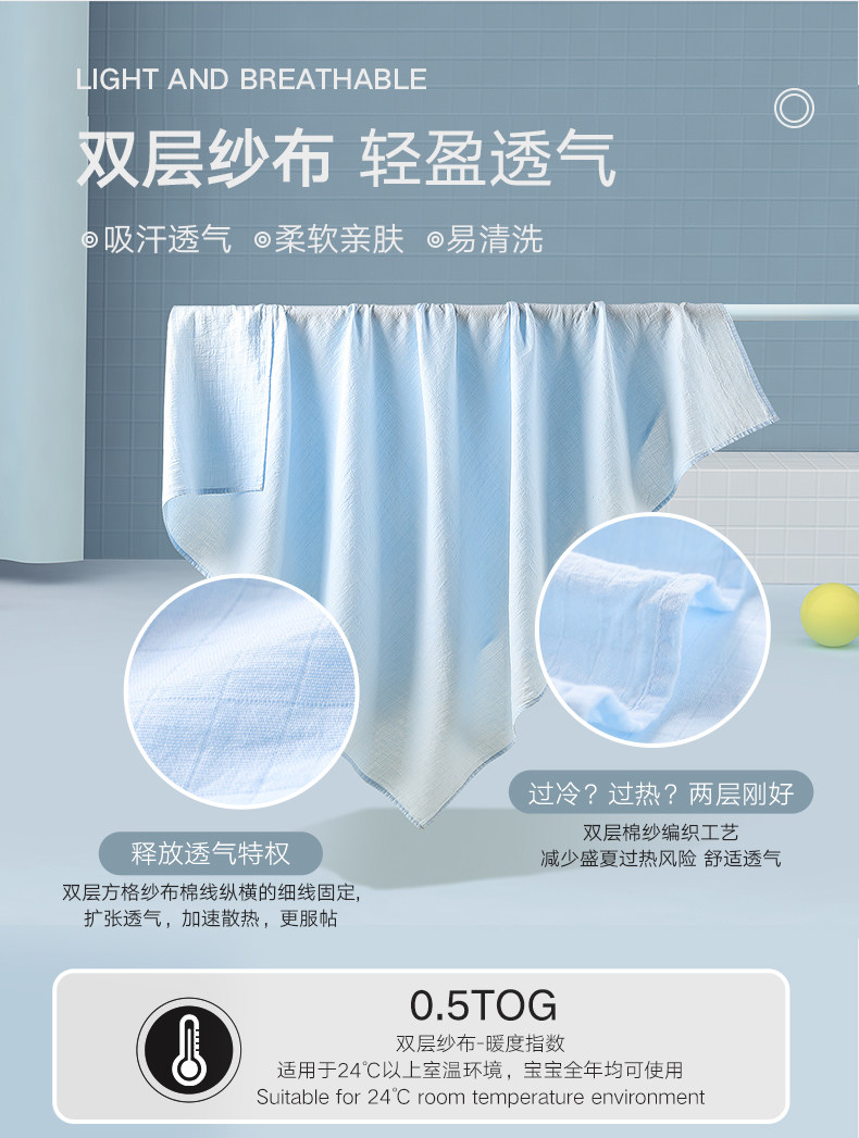 - Антибактериальное марлевое синее одеяло