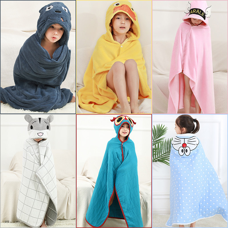 Детское банное полотенце, плащ, детская шапочка для плавания, хлопковый быстросохнущий банный халат, хорошо впитывает воду, подходит для подростков