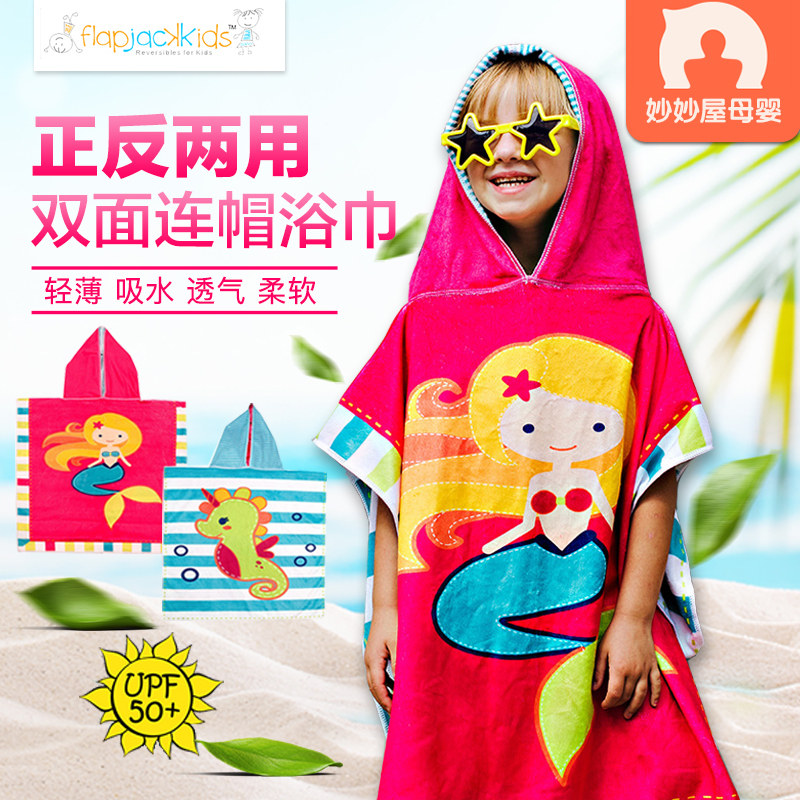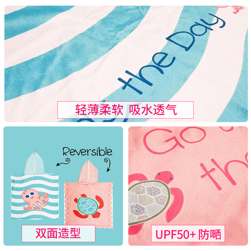 Детское двусторонное пляжное банное полотенце, плащ с капюшоном, банный халат, хорошо впитывает воду, защита от солнца