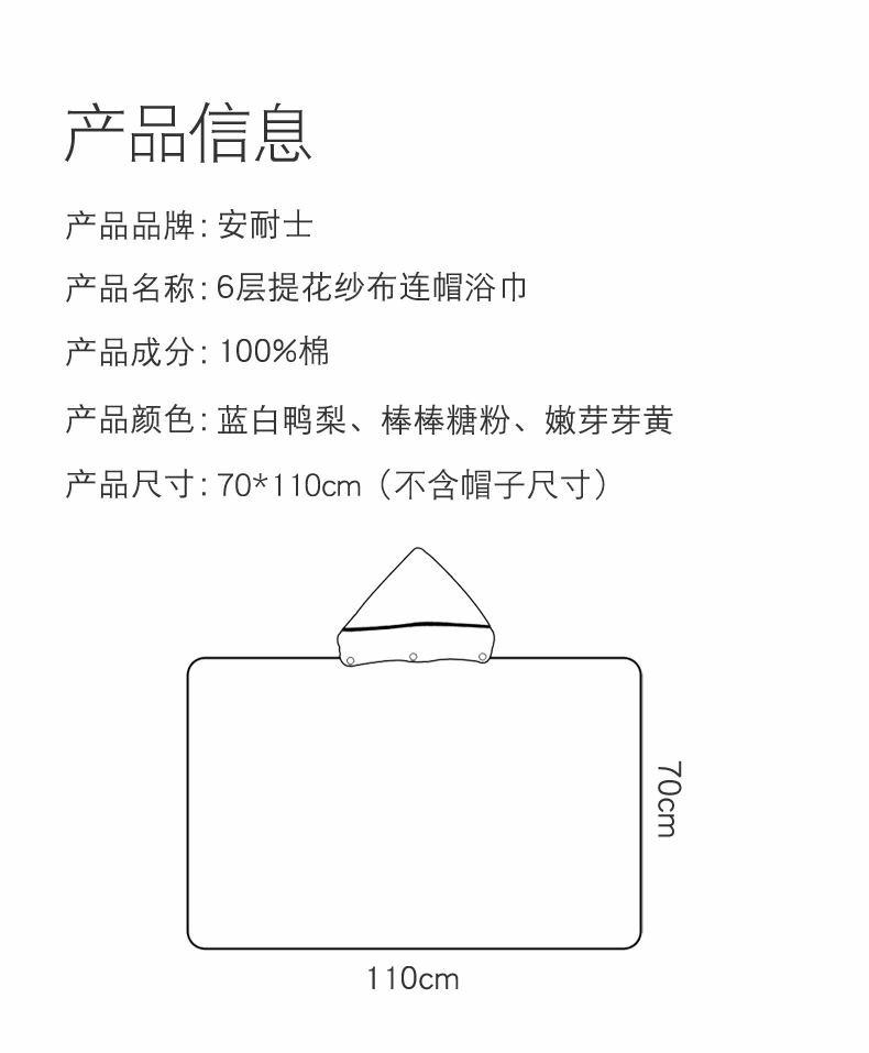 安耐士 Детское хлопковое марлевое банное полотенце с капюшоном, дышащий плащ для новорожденных, банный халат, хорошо впитывает воду