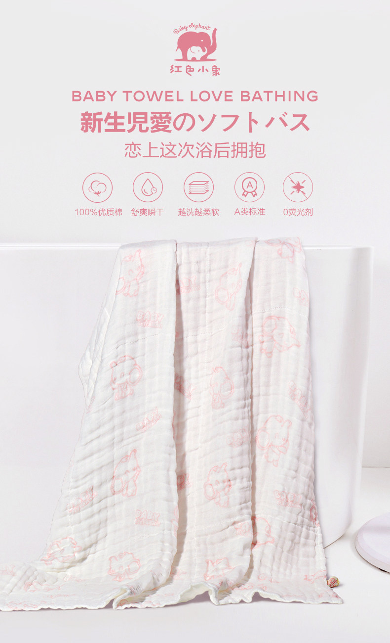红色小象 Детское хлопковое марлевое банное полотенце для новорожденных, банный халат, хорошо впитывает воду