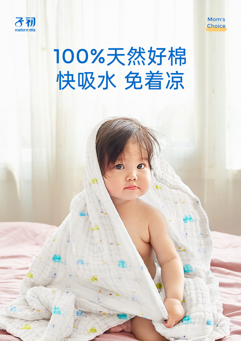 子初 Детское банное полотенце для новорожденных, хлопковое марлевое одеяло, хорошо впитывает воду