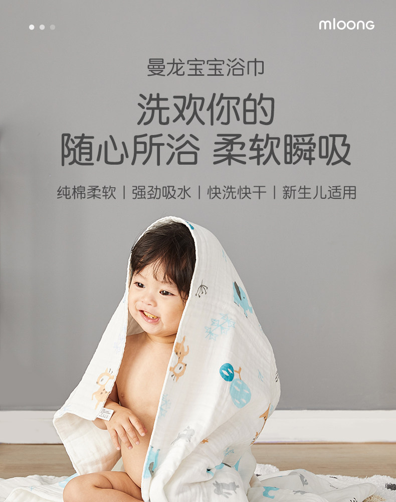 曼龙 Хлопковое банное полотенце для младенца для раннего возраста, быстросохнущее детское мультяшное одеяло, хорошо впитывает воду
