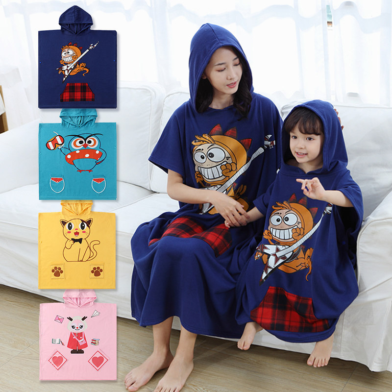 Детское банное полотенце, плащ, детская шапочка для плавания, хлопковый быстросохнущий банный халат подходит для мужчин и женщин, подходит для подростков, хорошо впитывает воду
