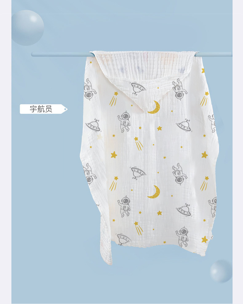 - Антибактериальное хлопковое марлевое банное полотенце, космонавт, 6 этажей
