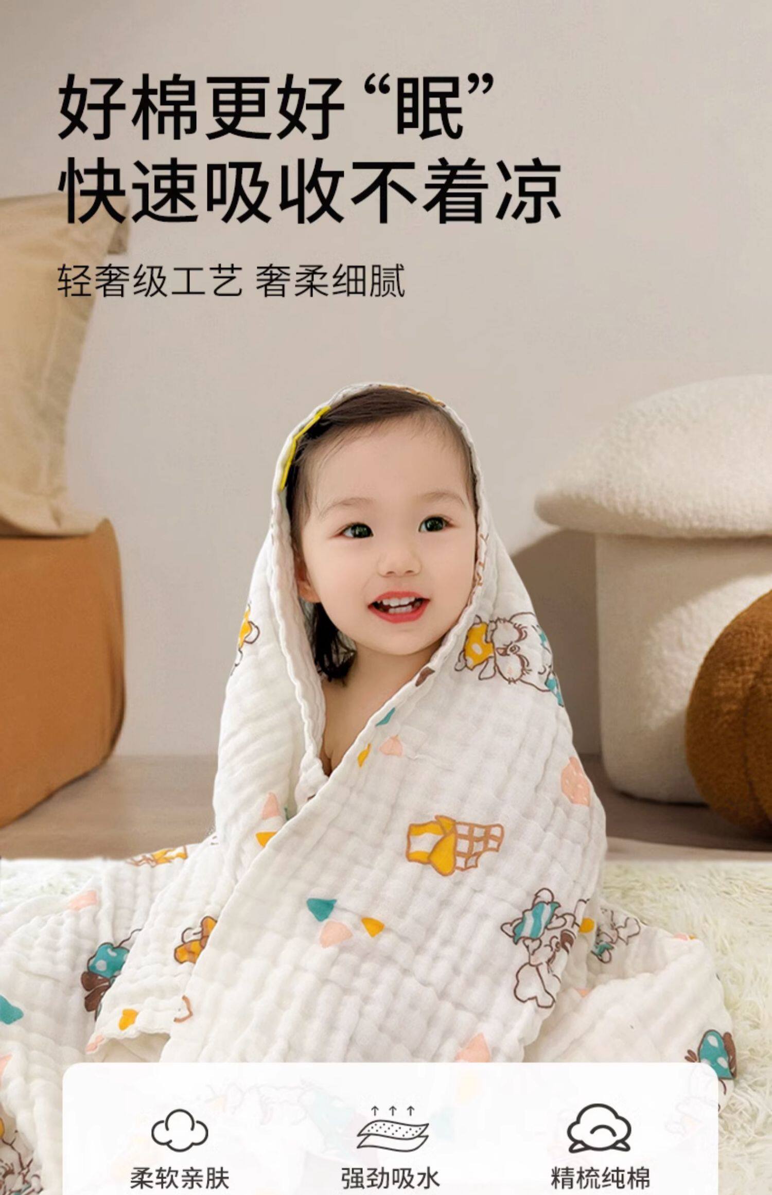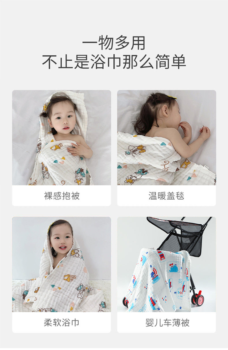 巴布豆 Детское хлопковое марлевое банное полотенце, одеяло для новорожденных, хорошо впитывает воду