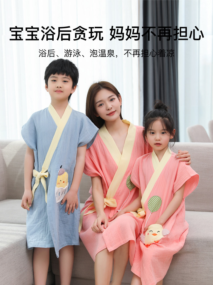 Детское хлопковое быстросохнущее банное полотенце подходит для мужчин и женщин, летний тонкий банный халат для плавания, хорошо впитывает воду, семейный стиль